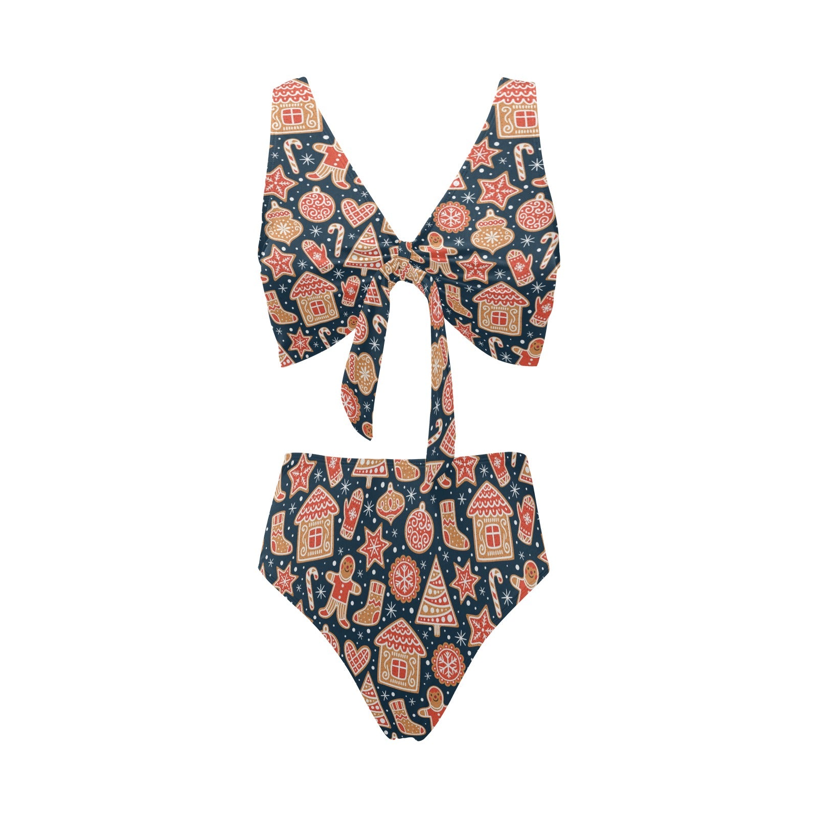 Christmas gingerbread cookie pattern Chest Bowknot High Waisted Bikini Swimsuit