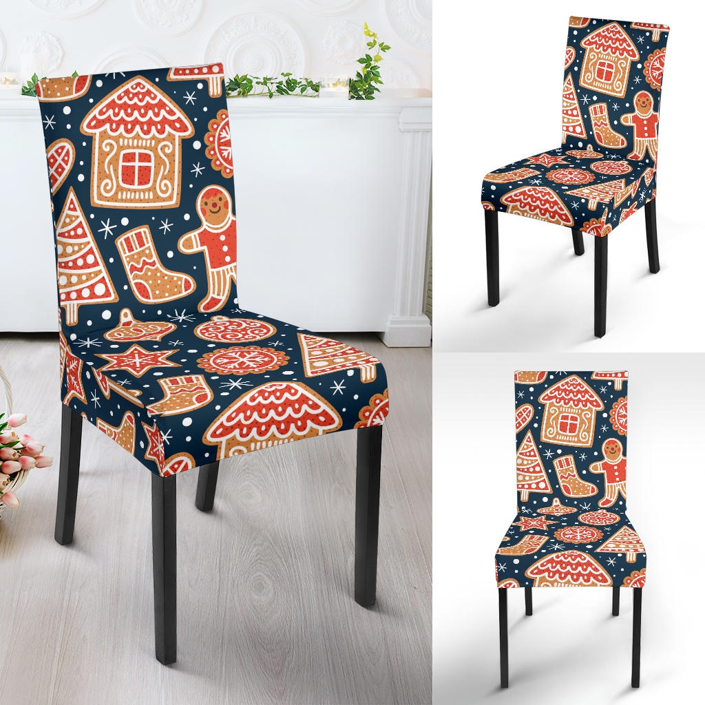 Christmas Gingerbread Cookie Pattern Dining Chair Slipcover