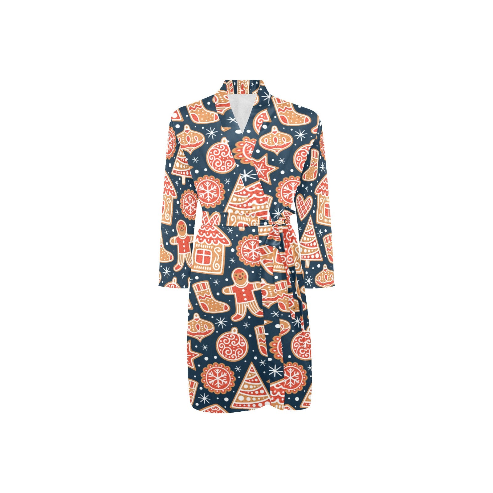Christmas gingerbread cookie pattern Men's Long Sleeve Belted Night Robe