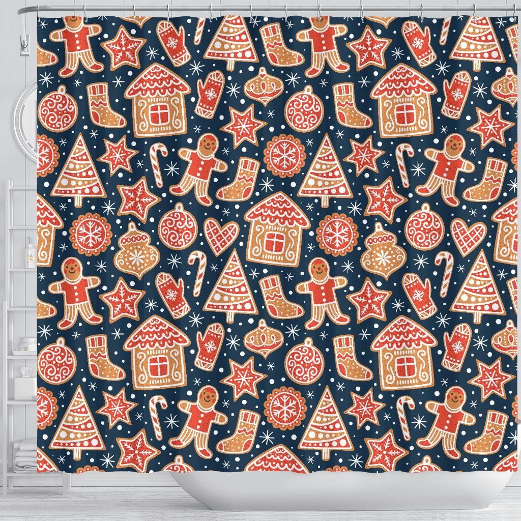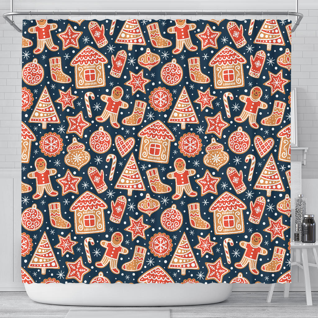 Christmas Gingerbread Cookie Pattern Shower Curtain Fulfilled In US