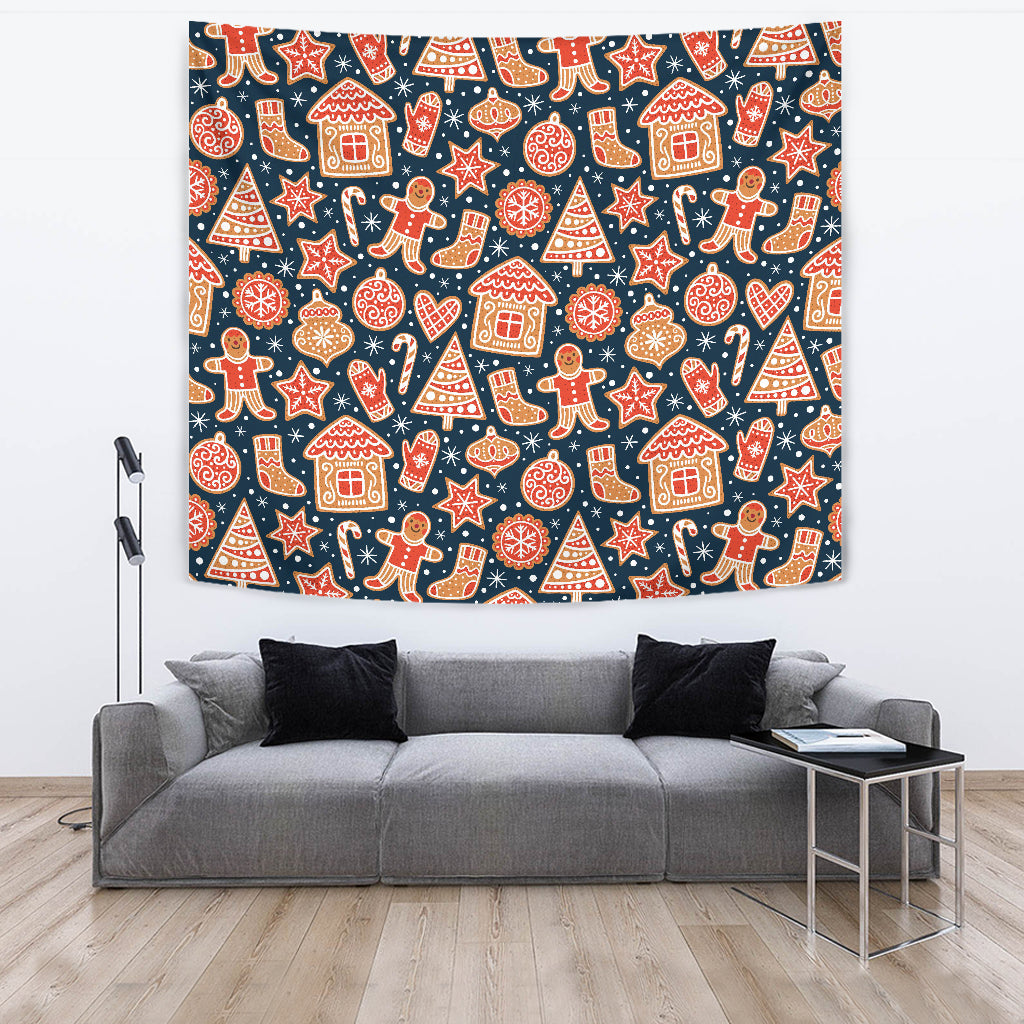 Christmas Gingerbread Cookie Pattern Wall Tapestry