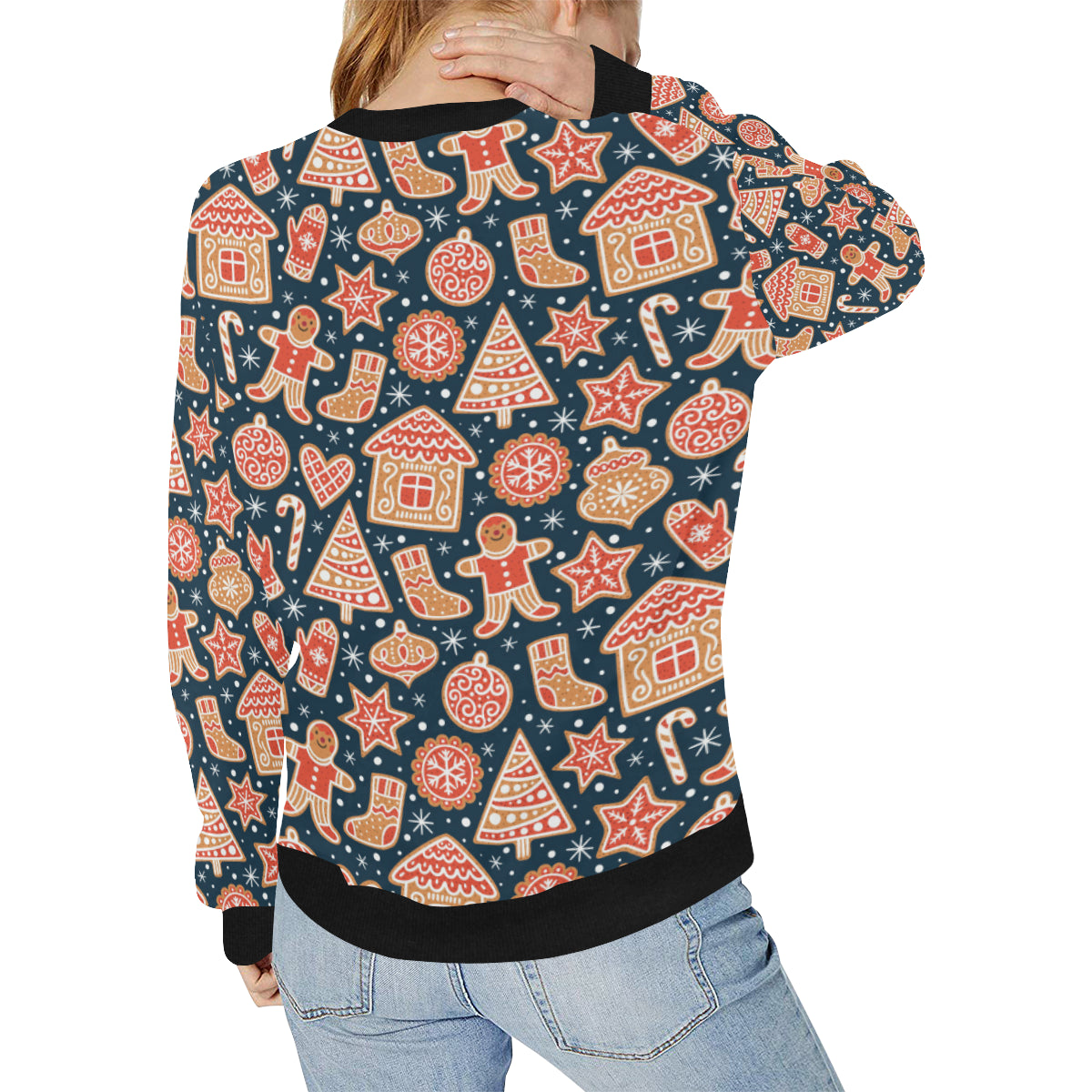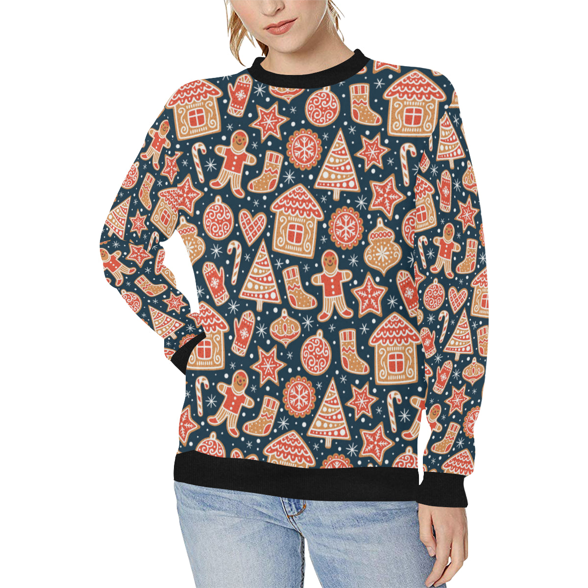 Christmas gingerbread cookie pattern Women's Crew Neck Sweatshirt