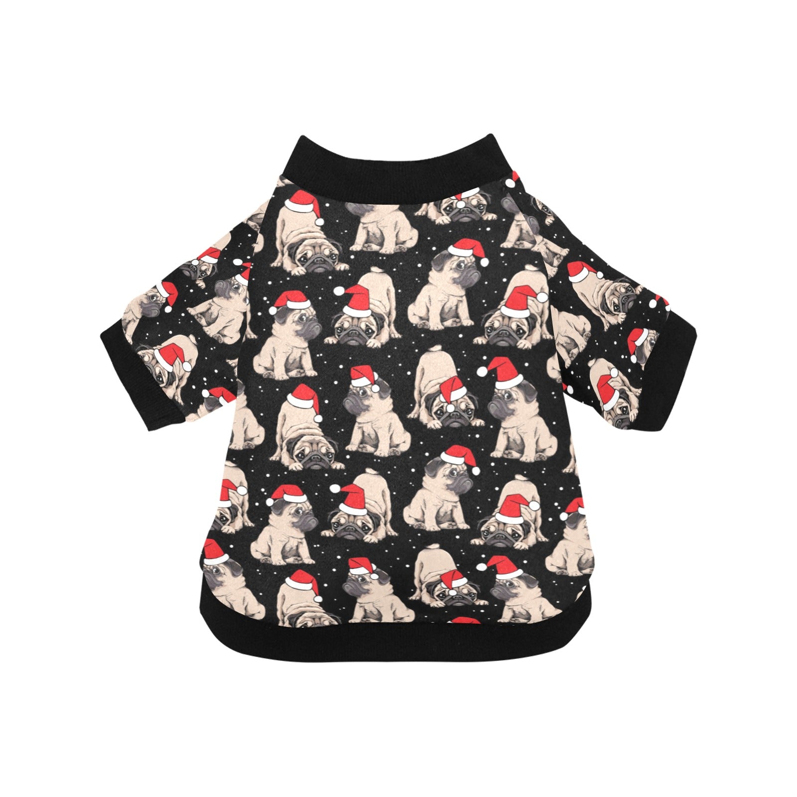Christmas Pugs Santa_s red cap pattern All Over Print Pet Dog Round Neck Fuzzy Shirt