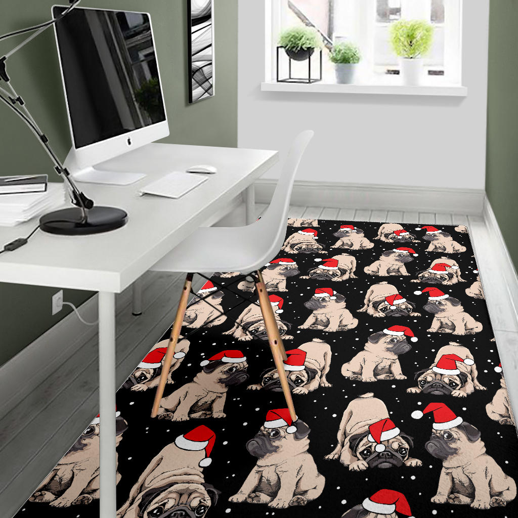 Christmas Pugs Santa_s red cap pattern Area Rug is a uniqued design and limited item. It made to order, hand printed, and sewn with love in our factory.
