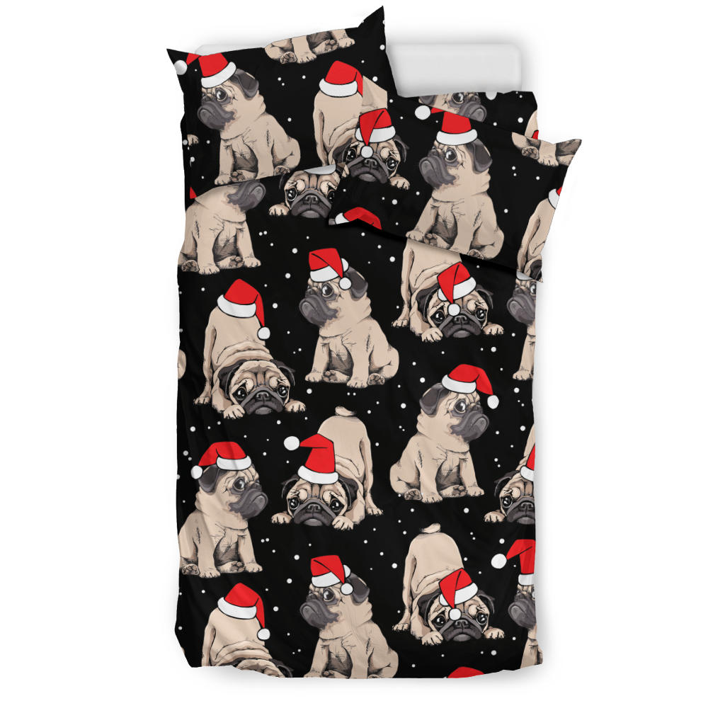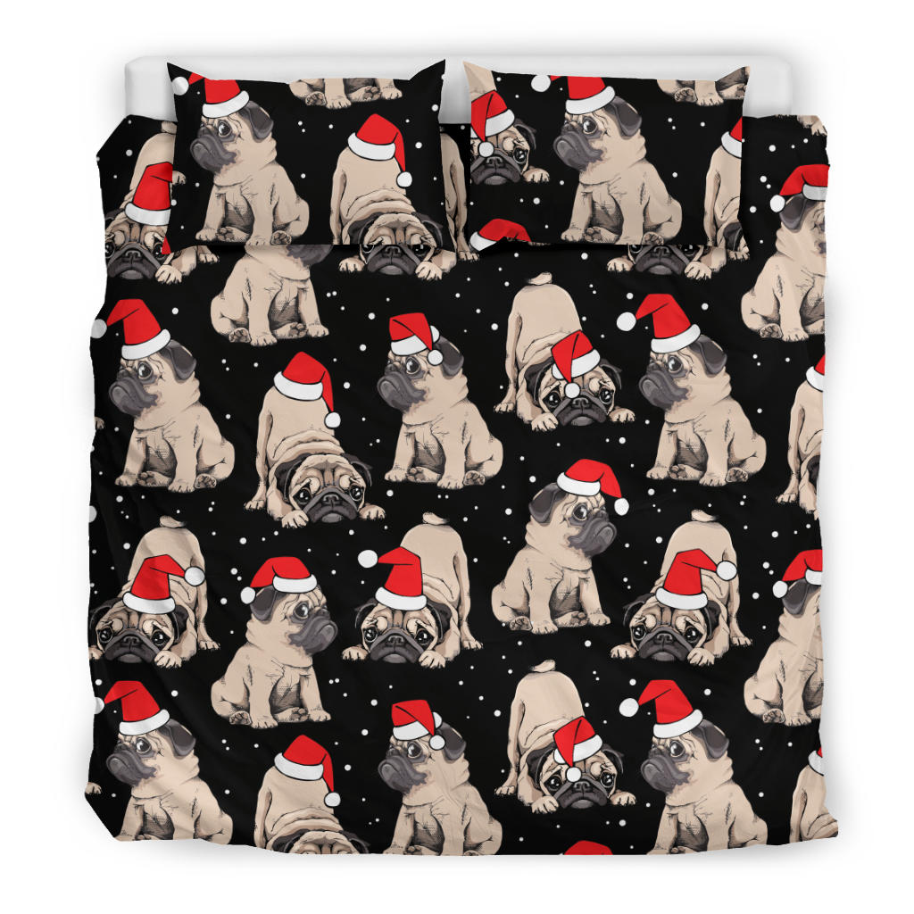 Christmas Pugs Santa_s red cap pattern Bedding Set is a uniqued design and limited item. It made to order, hand printed, and sewn with love in our factory.