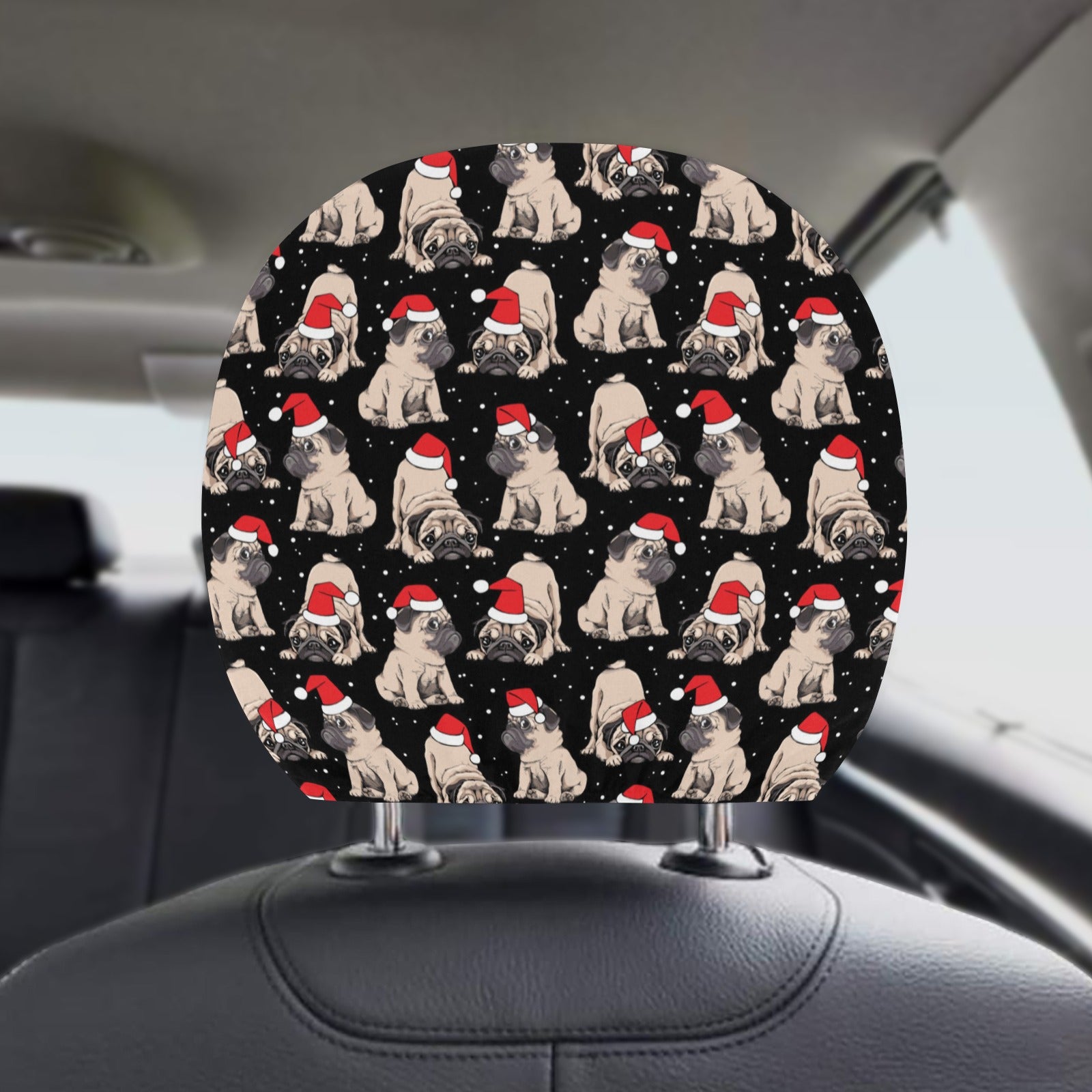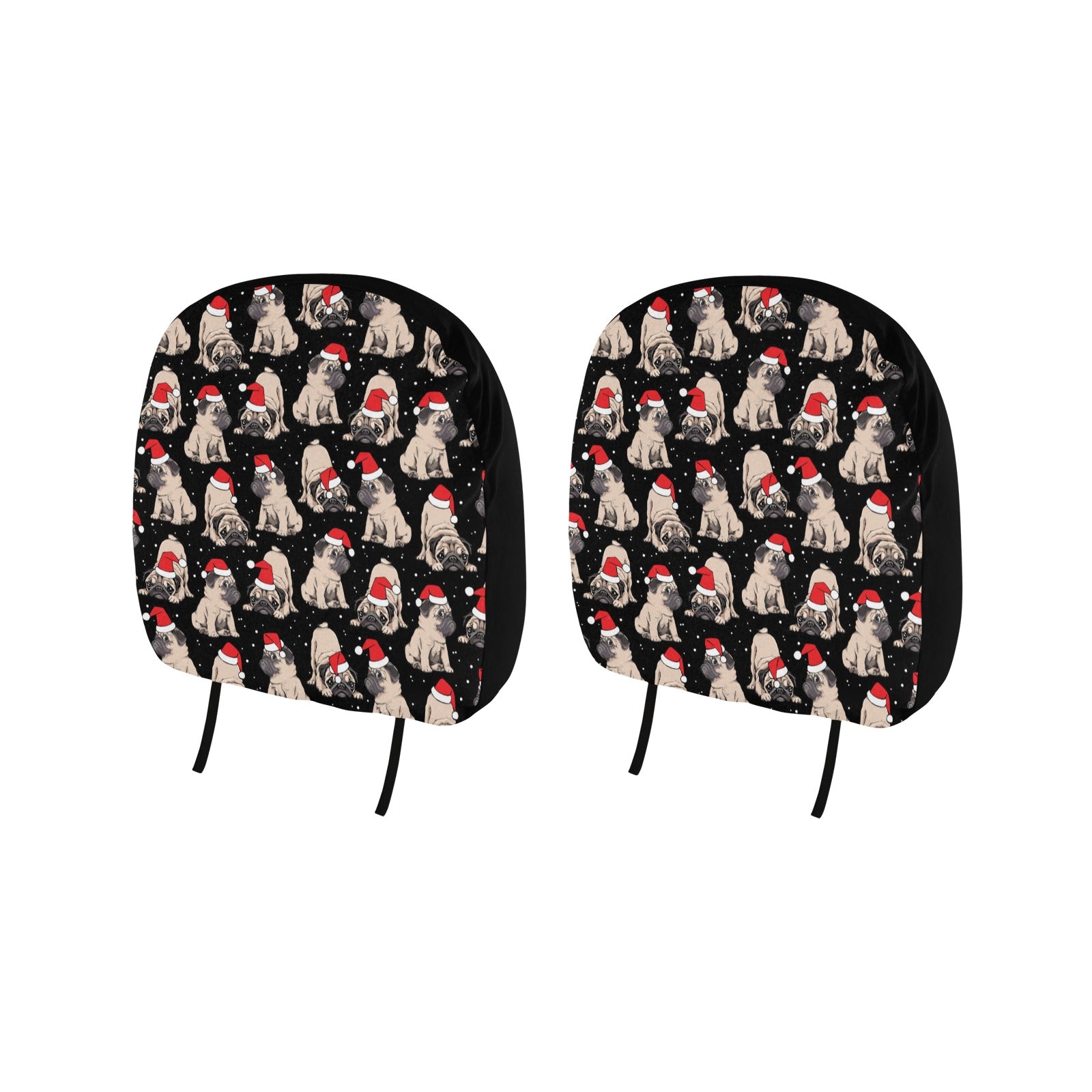 Christmas Pugs Santa_s red cap pattern Car Headrest Cover