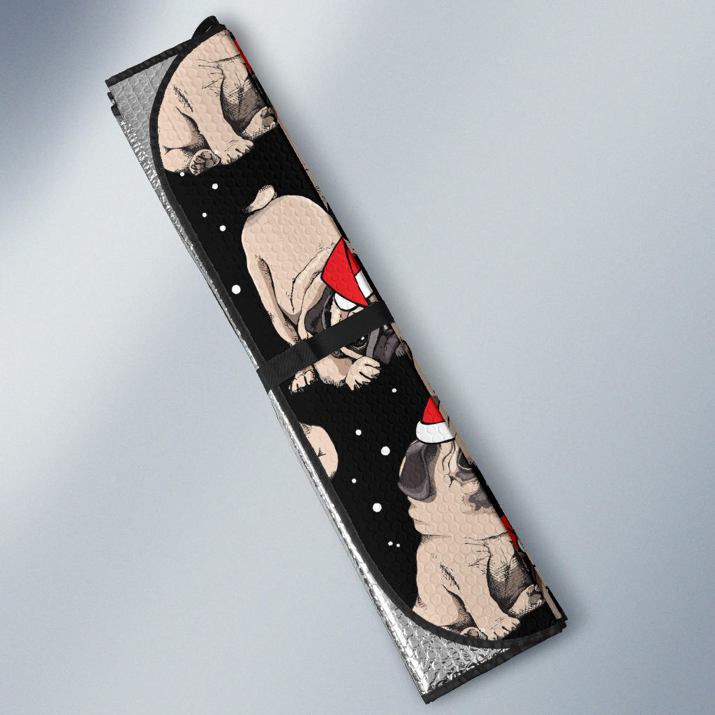 Christmas Pugs Santa_s red cap pattern Car Sun Shade is a uniqued design and limited item. It made to order, hand printed, and sewn with love in our factory.