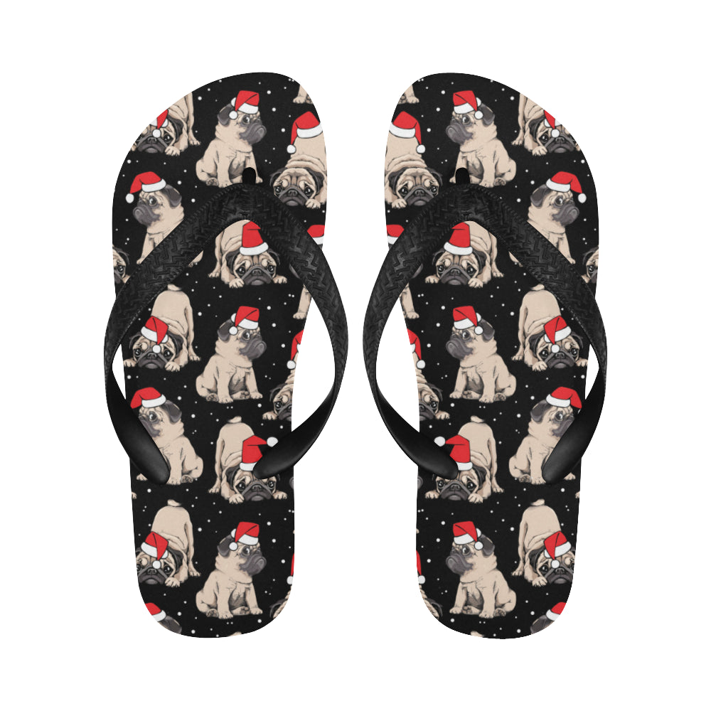 Christmas Pugs Santa_s red cap pattern Unisex Flip Flops is a uniqued design and limited item. It made to order, hand printed, and sewn with love in our factory.