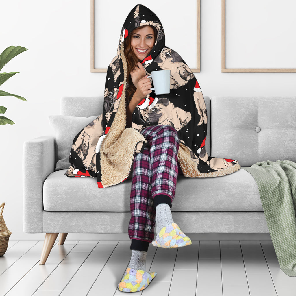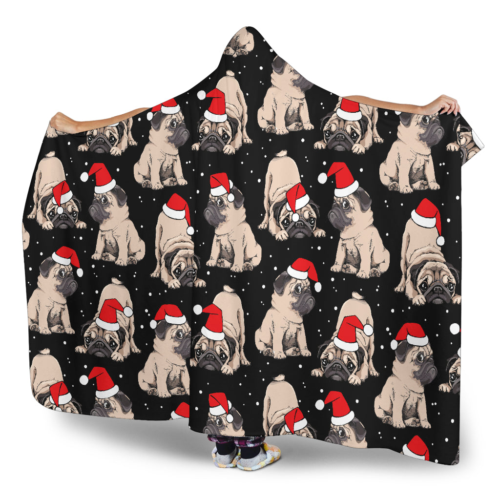 Christmas Pugs Santa_s red cap pattern Hooded Blanket are custom-made-to-order and handcrafted to the highest quality standards.