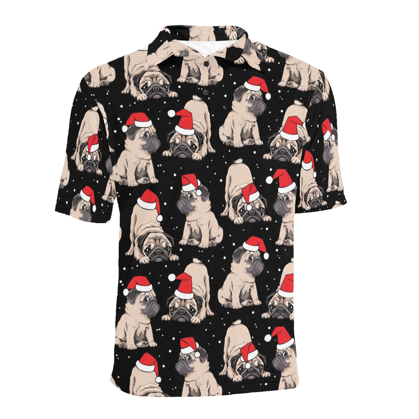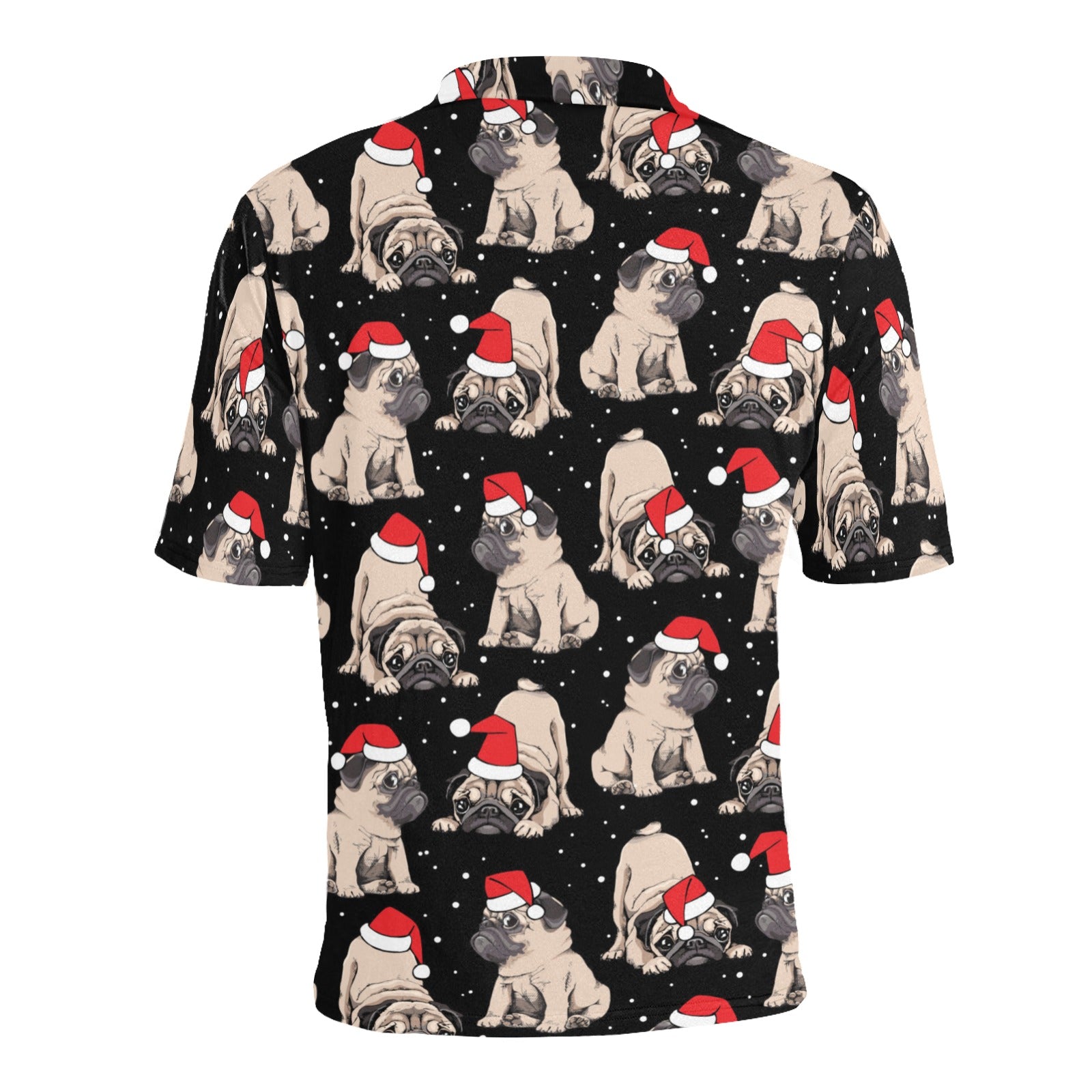Christmas Pugs Santa_s red cap pattern Men's All Over Print Polo Shirt