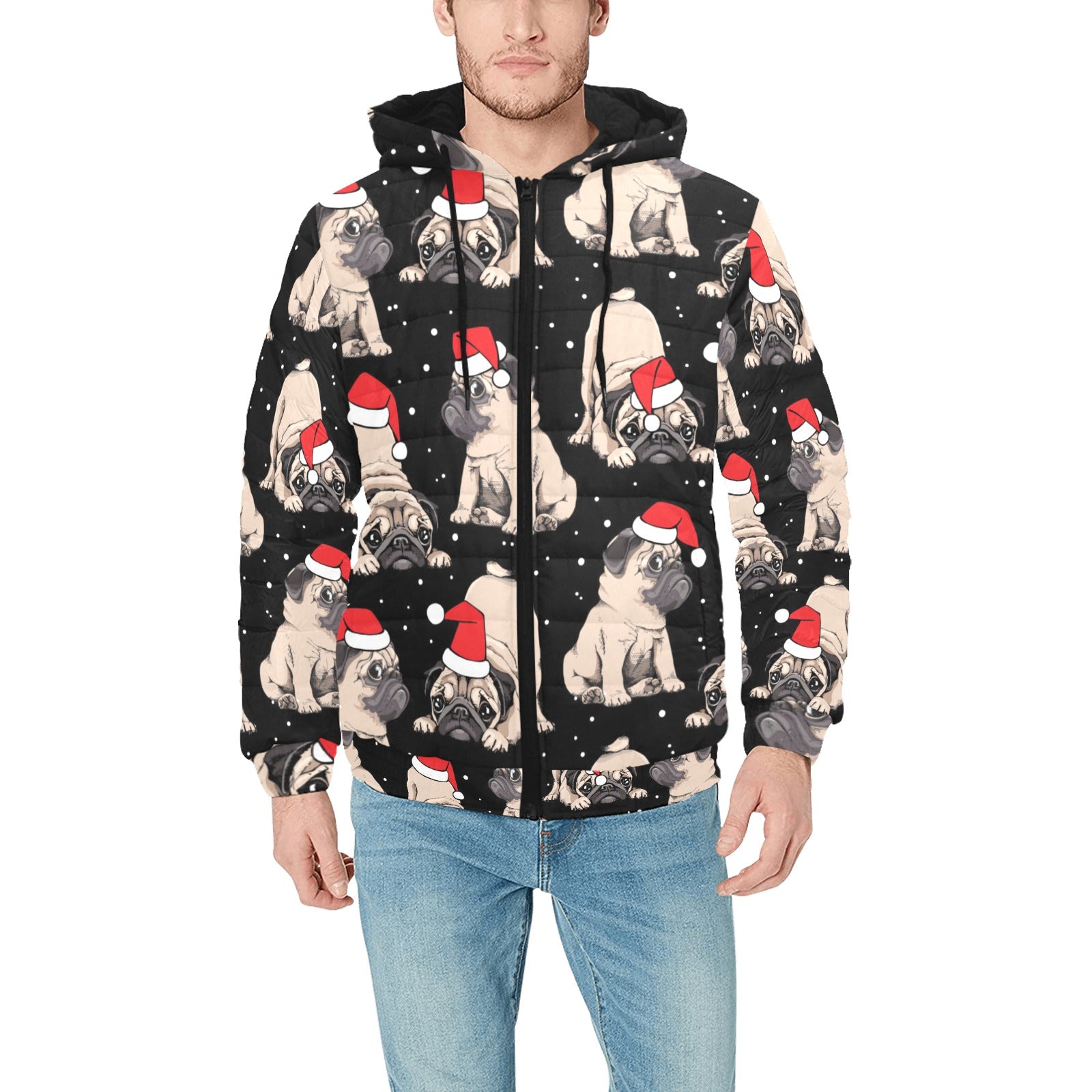 Christmas Pugs Santa_s red cap pattern Men's Padded Hooded Jacket