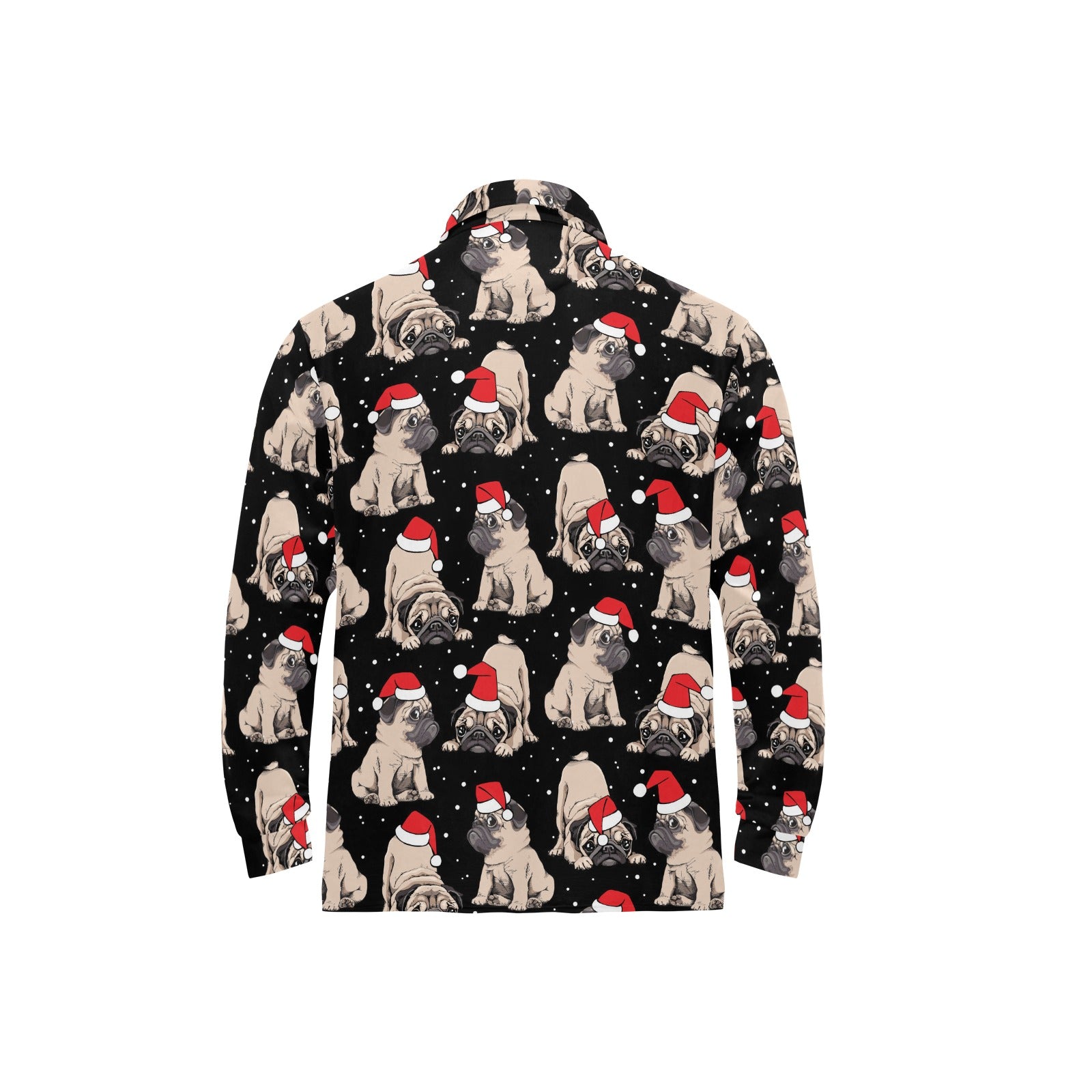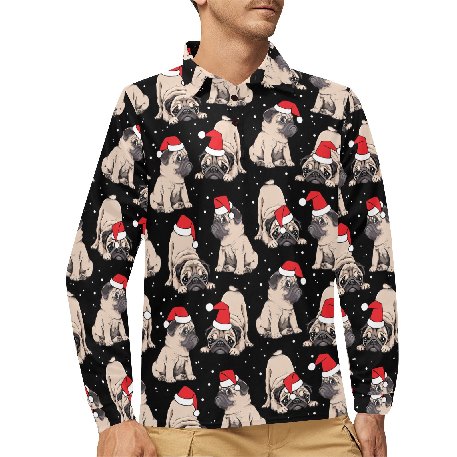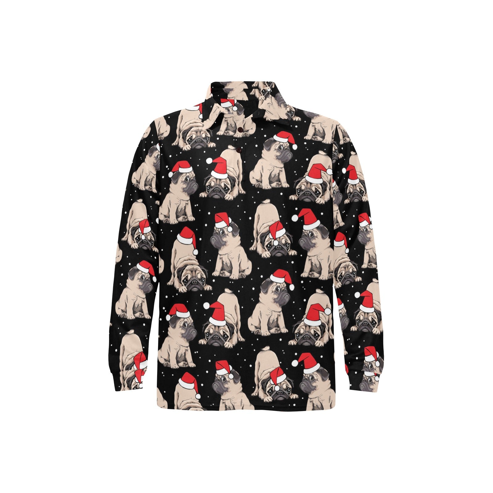Christmas Pugs Santa_s red cap pattern Men's Long Sleeve Polo Shirt