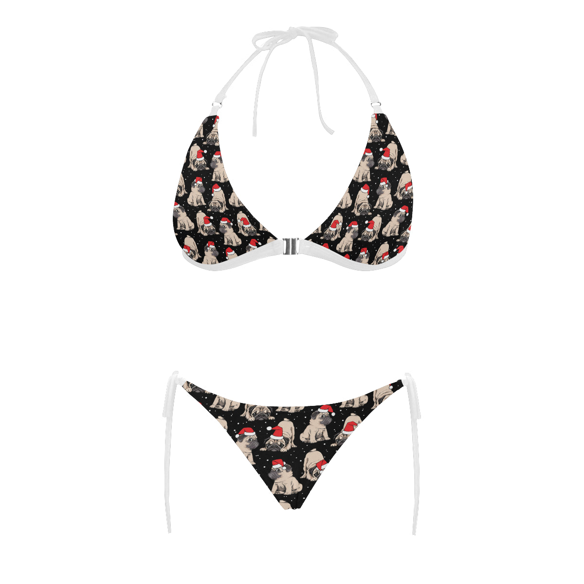 Christmas Pugs Santa_s red cap pattern Sexy Bikinis Two-Piece Swimsuits are uniqued design and limited item. It made to order, hand printed, and sewn with love in our factory.