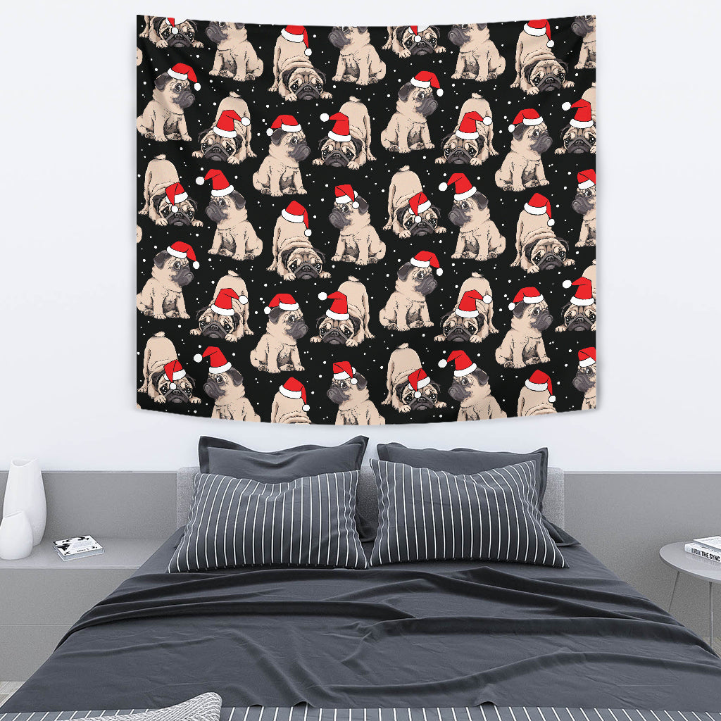 Christmas Pugs Santa_s red cap pattern Tapestry is a uniqued design and limited item. It made to order, hand printed, and sewn with love in our factory.