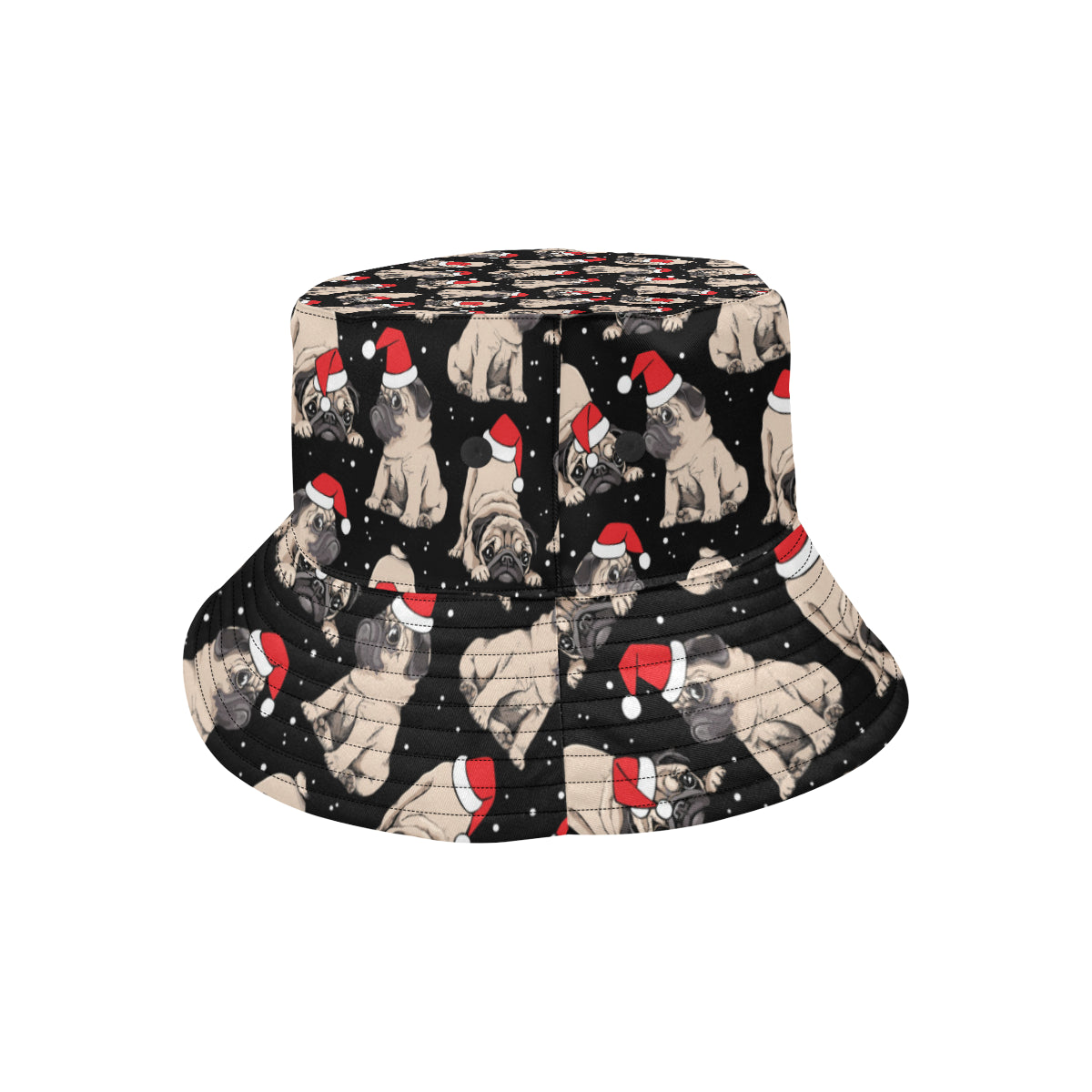 Christmas Pugs Santa_s red cap pattern Unisex Bucket Hat is a uniqued design and limited item. It made to order, hand printed, and sewn with love in our factory.
