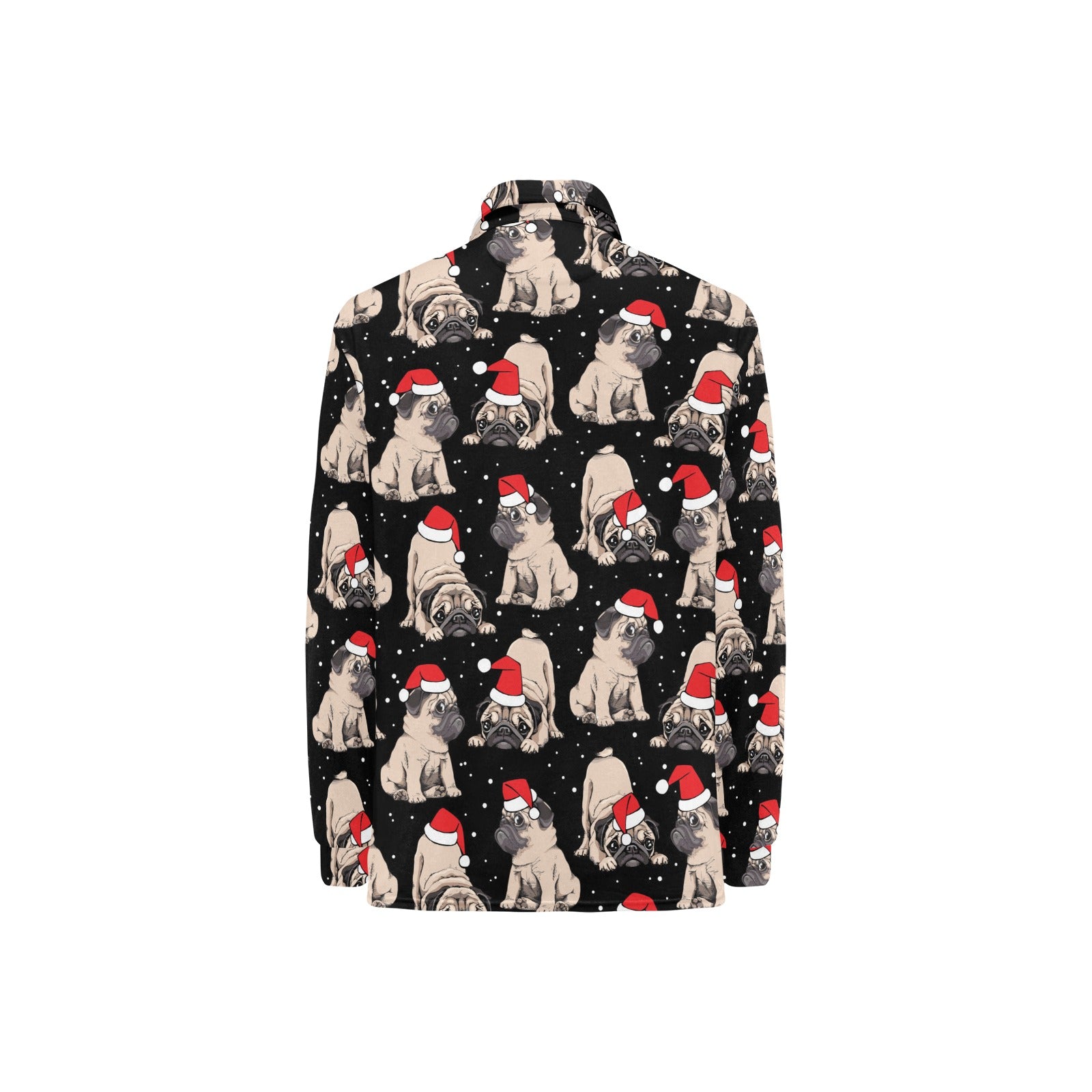 Christmas Pugs Santa_s red cap pattern Women's Long Sleeve Polo Shirt
