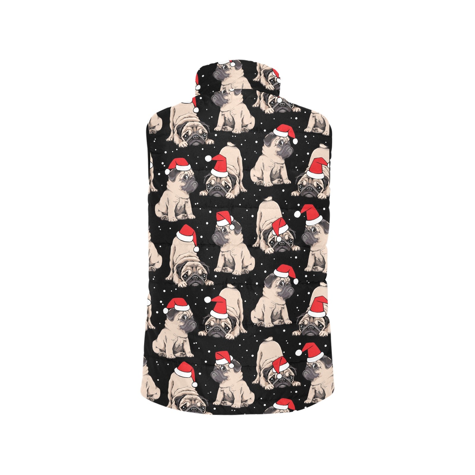 Christmas Pugs Santa_s red cap pattern Women's Padded Vest