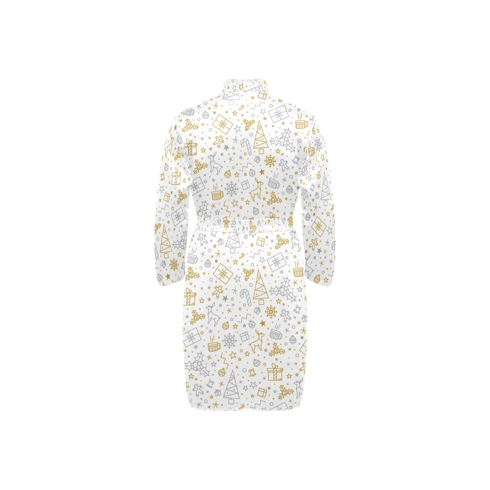 Christmas tree Christmas element Silver gold patte Men's Long Sleeve Belted Night Robe