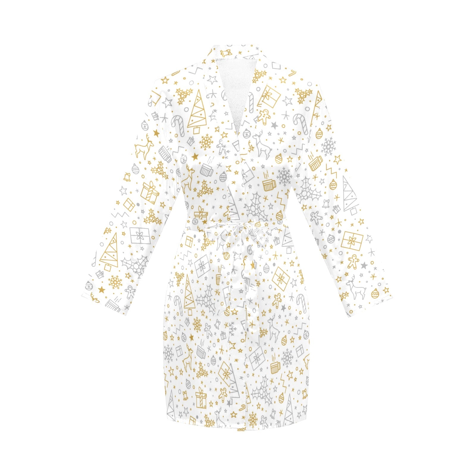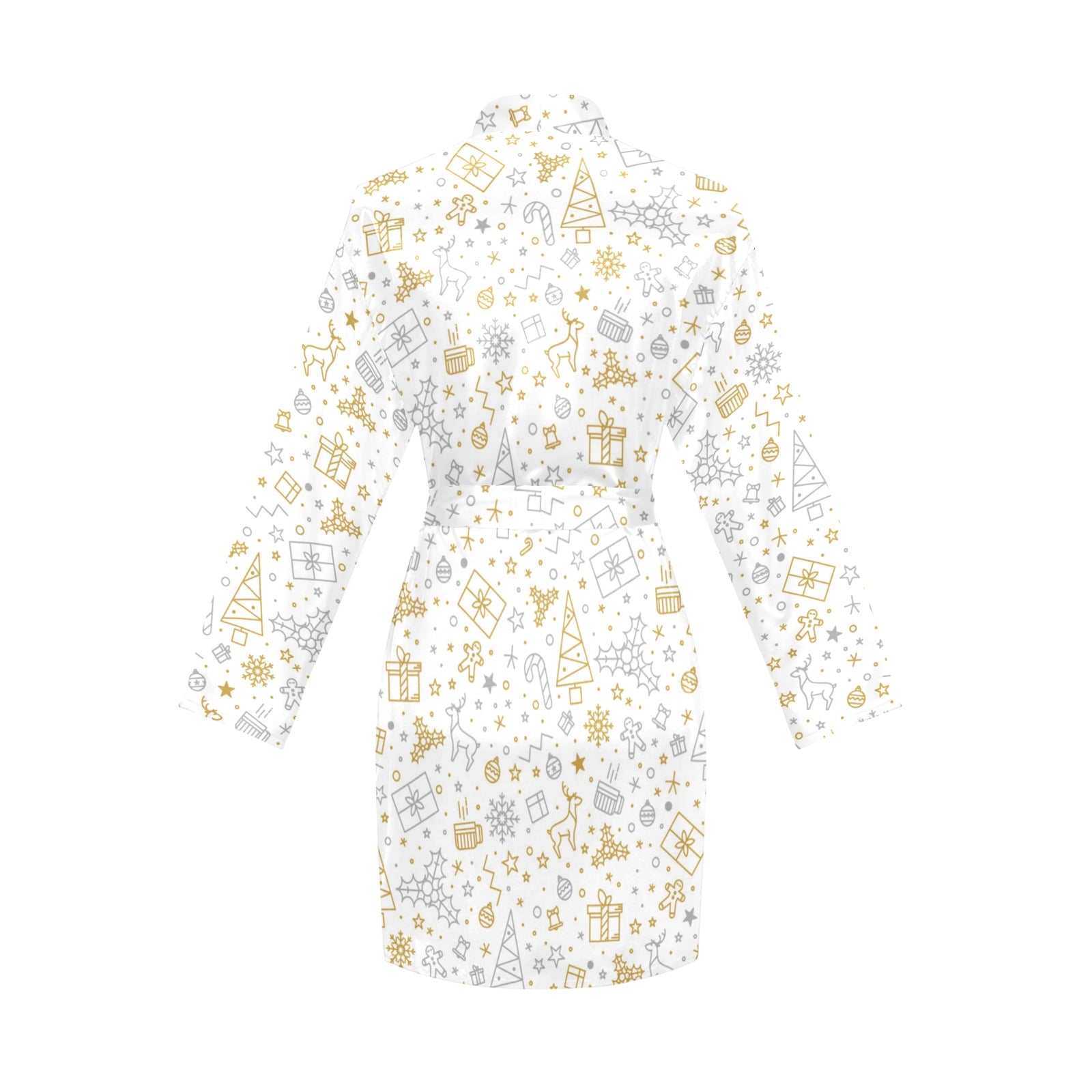 Christmas tree Christmas element Silver gold patte Women's Long Sleeve Belted Night Robe