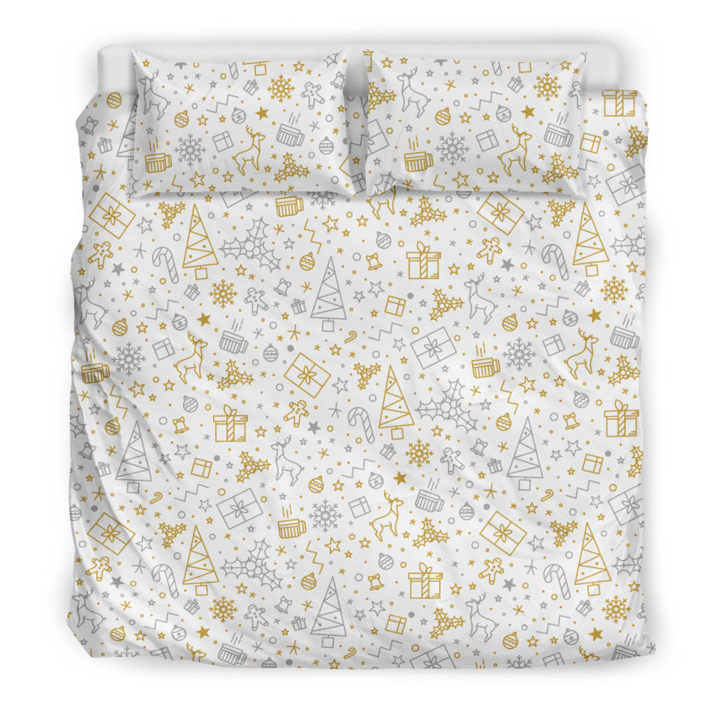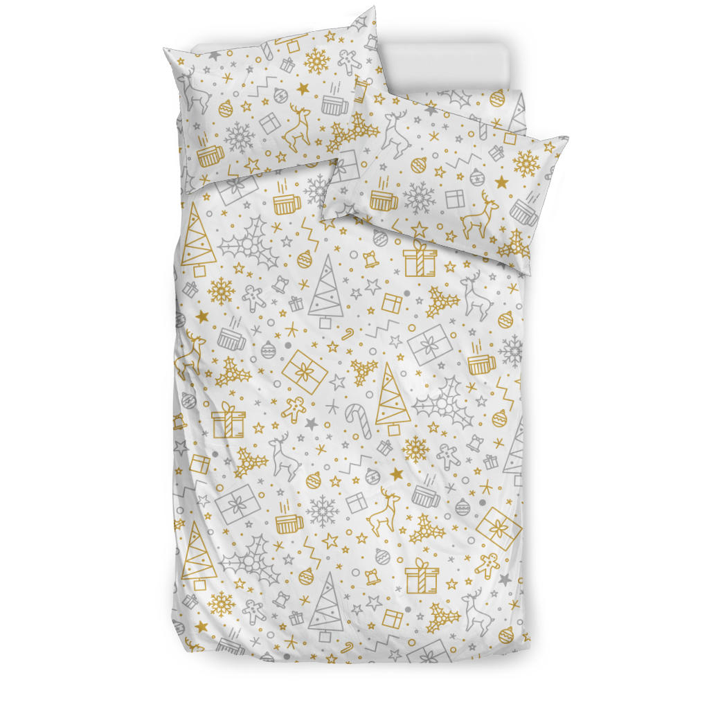Christmas tree Christmas element Silver gold pattern Bedding set is a uniqued design and limited item. It made to order, hand printed, and sewn with love in our factory.