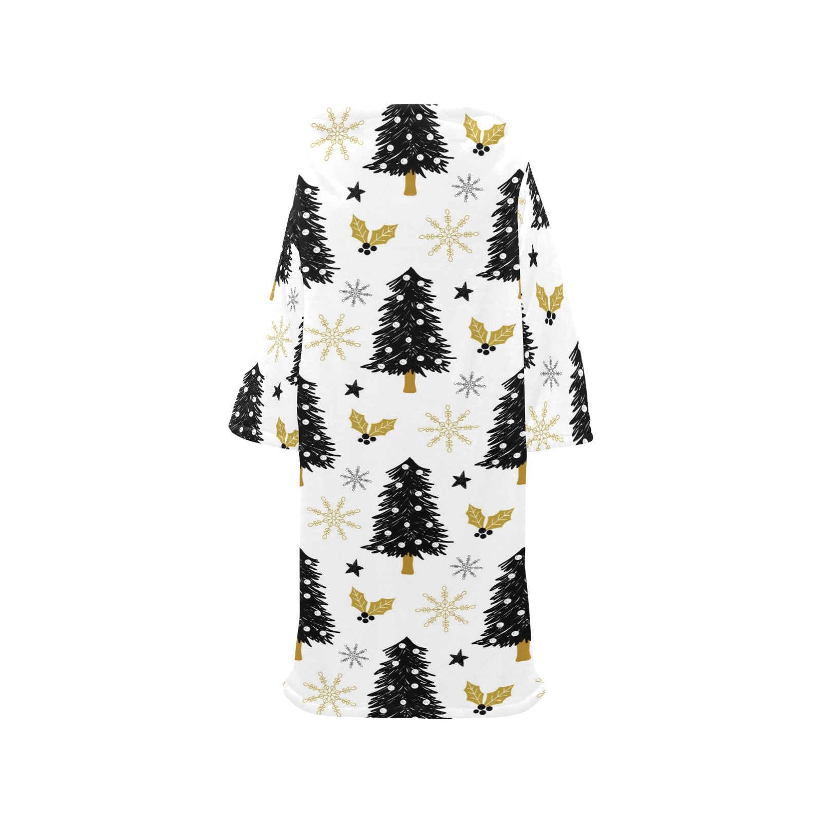 Christmas tree holly snow star pattern Blanket Robe with Sleeves