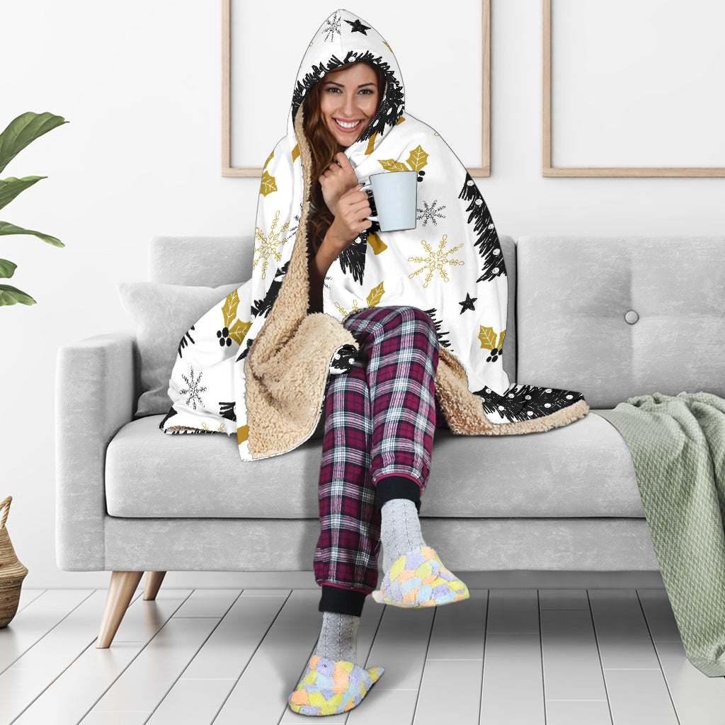 Christmas tree holly snow star pattern Hooded Blanket are custom-made-to-order and handcrafted to the highest quality standards.