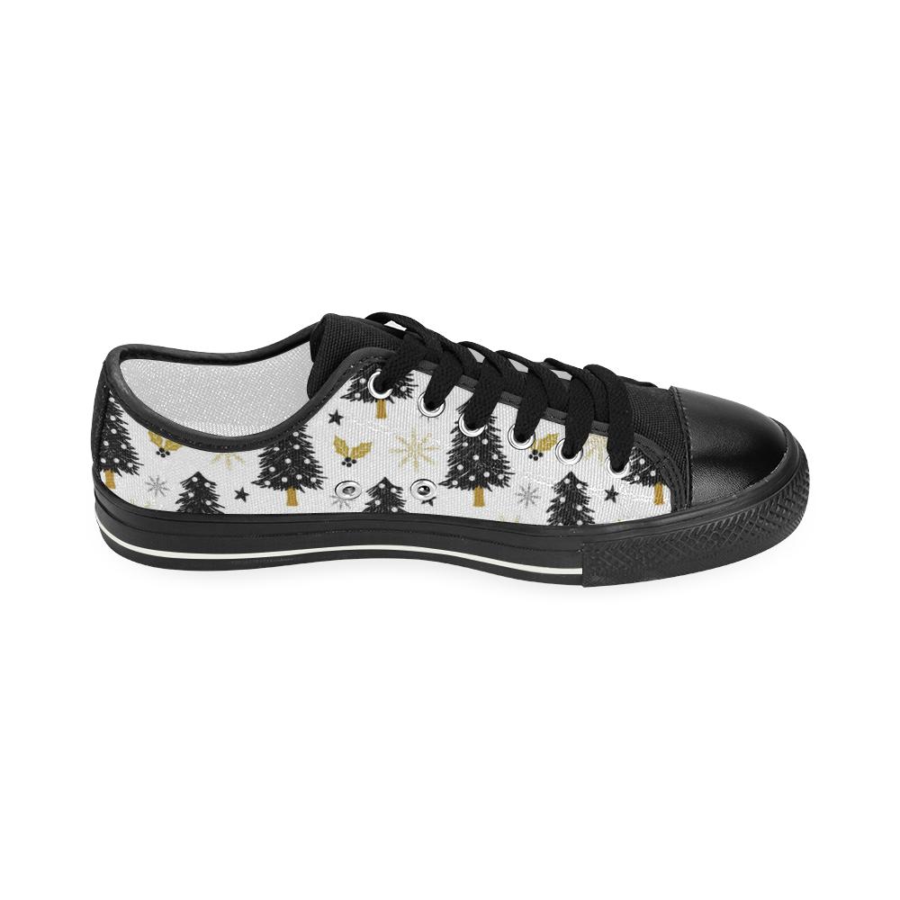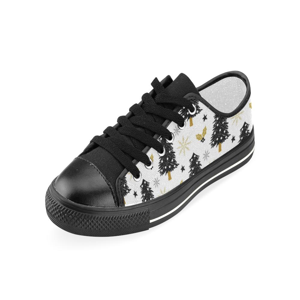 Christmas tree holly snow star pattern Kids' Boys' Girls' Low Top Canvas Shoes Black