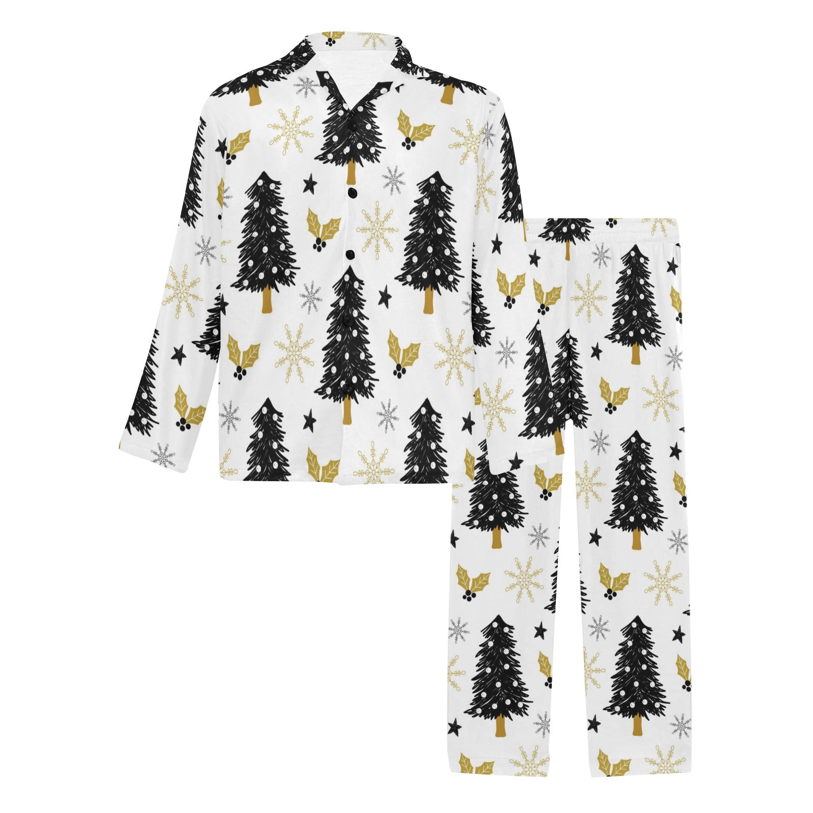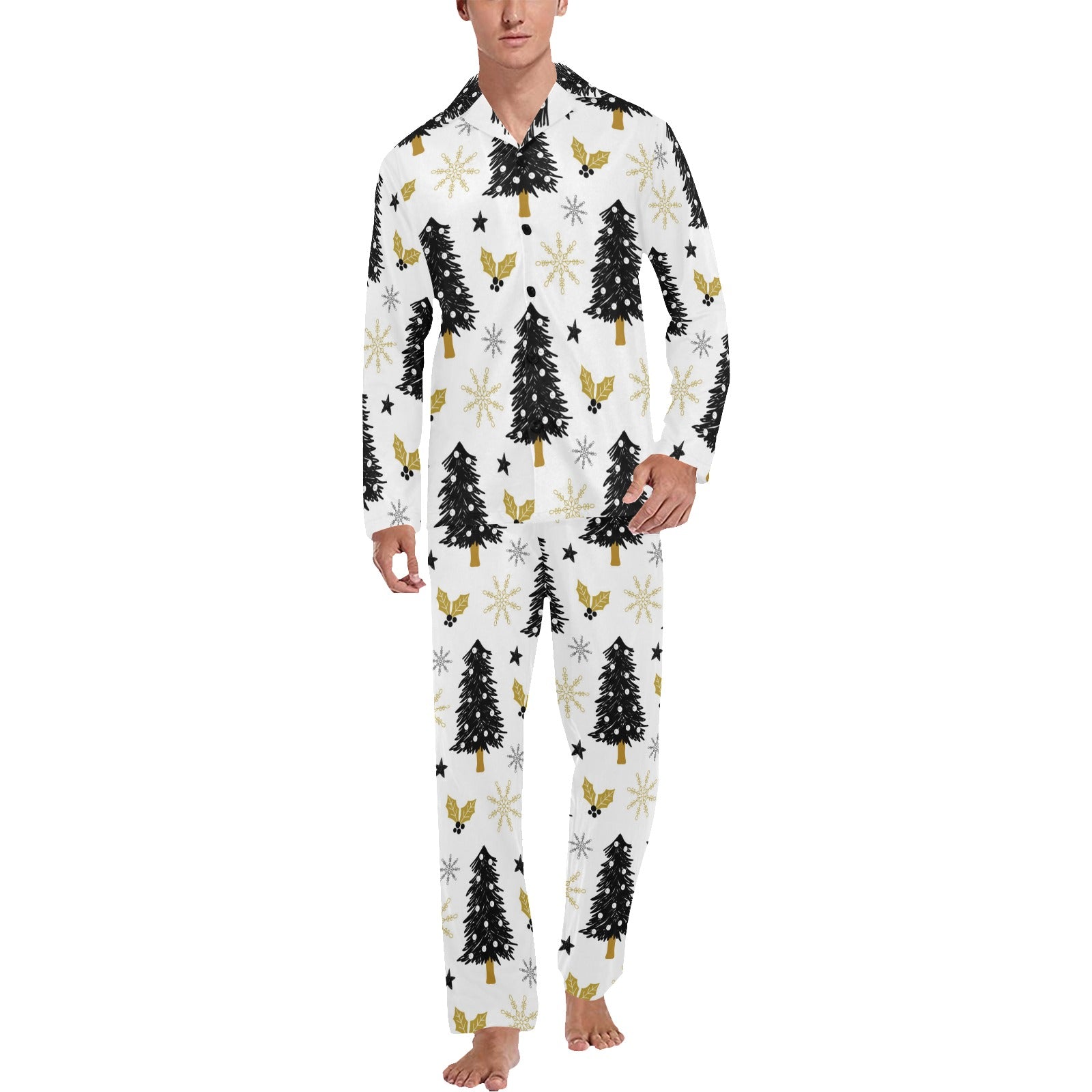 Christmas tree holly snow star pattern Men's Long Pajama Set