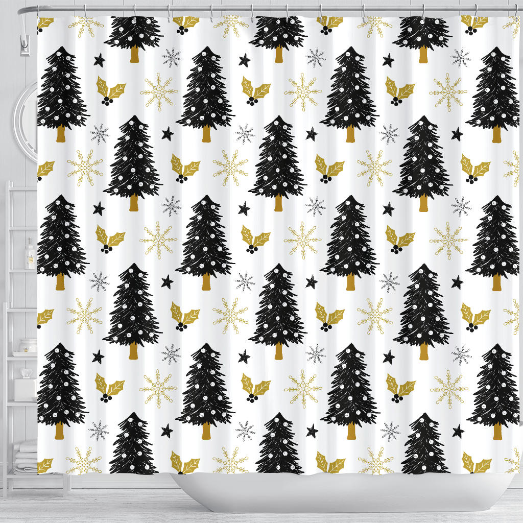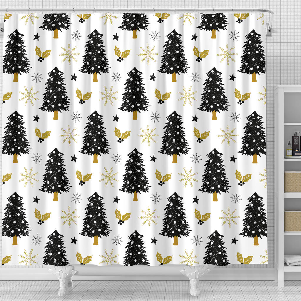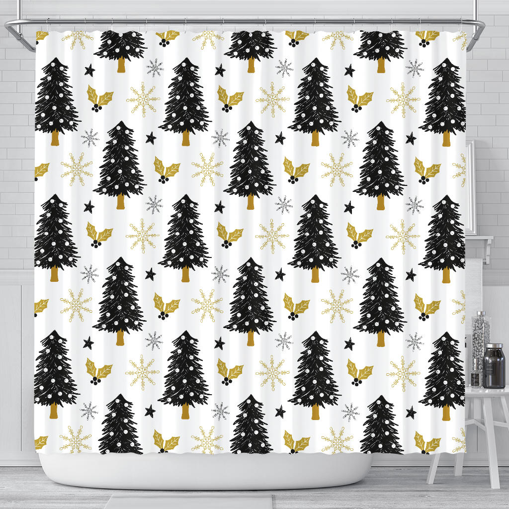 Christmas Tree Holly Snow Star Pattern Shower Curtain Fulfilled In US