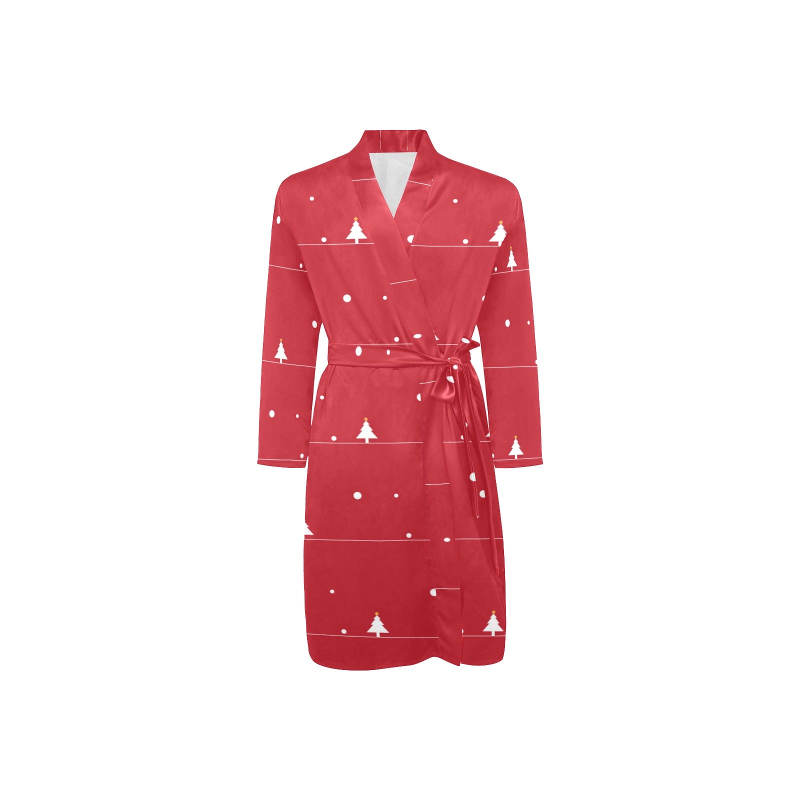 Christmas tree star snow red background Men's Long Sleeve Belted Night Robe