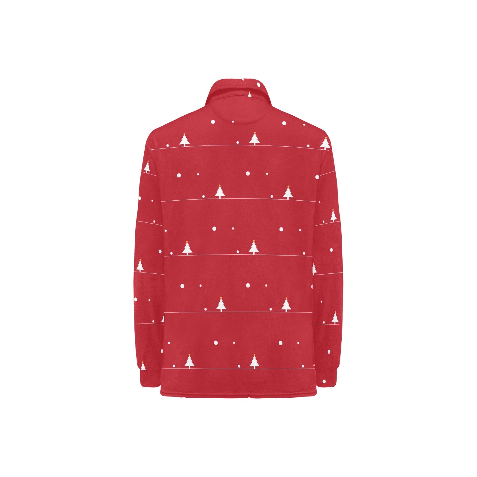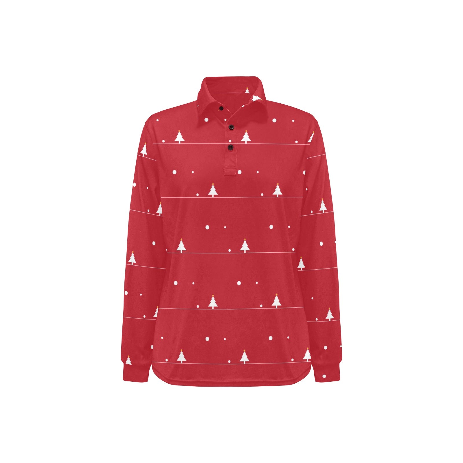 Christmas tree star snow red background Women's Long Sleeve Polo Shirt
