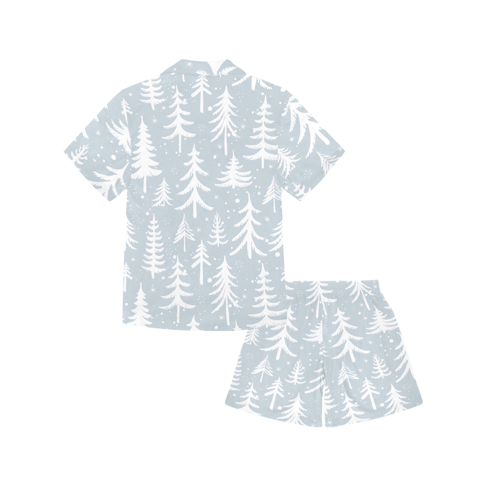 Christmas tree winter forest pattern Kids' Boys' Girls' V-Neck Short Pajama Set