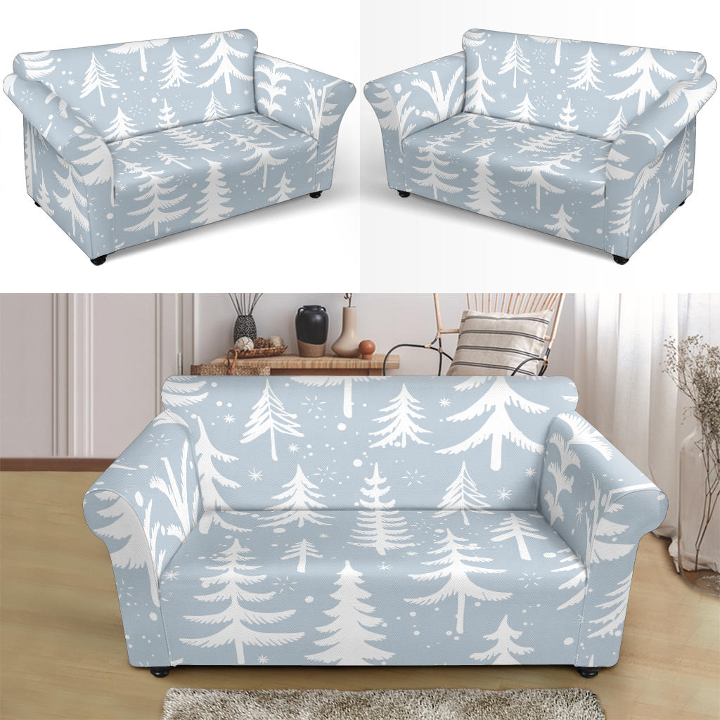 Christmas Tree Winter Forest Pattern Loveseat Couch Slipcover