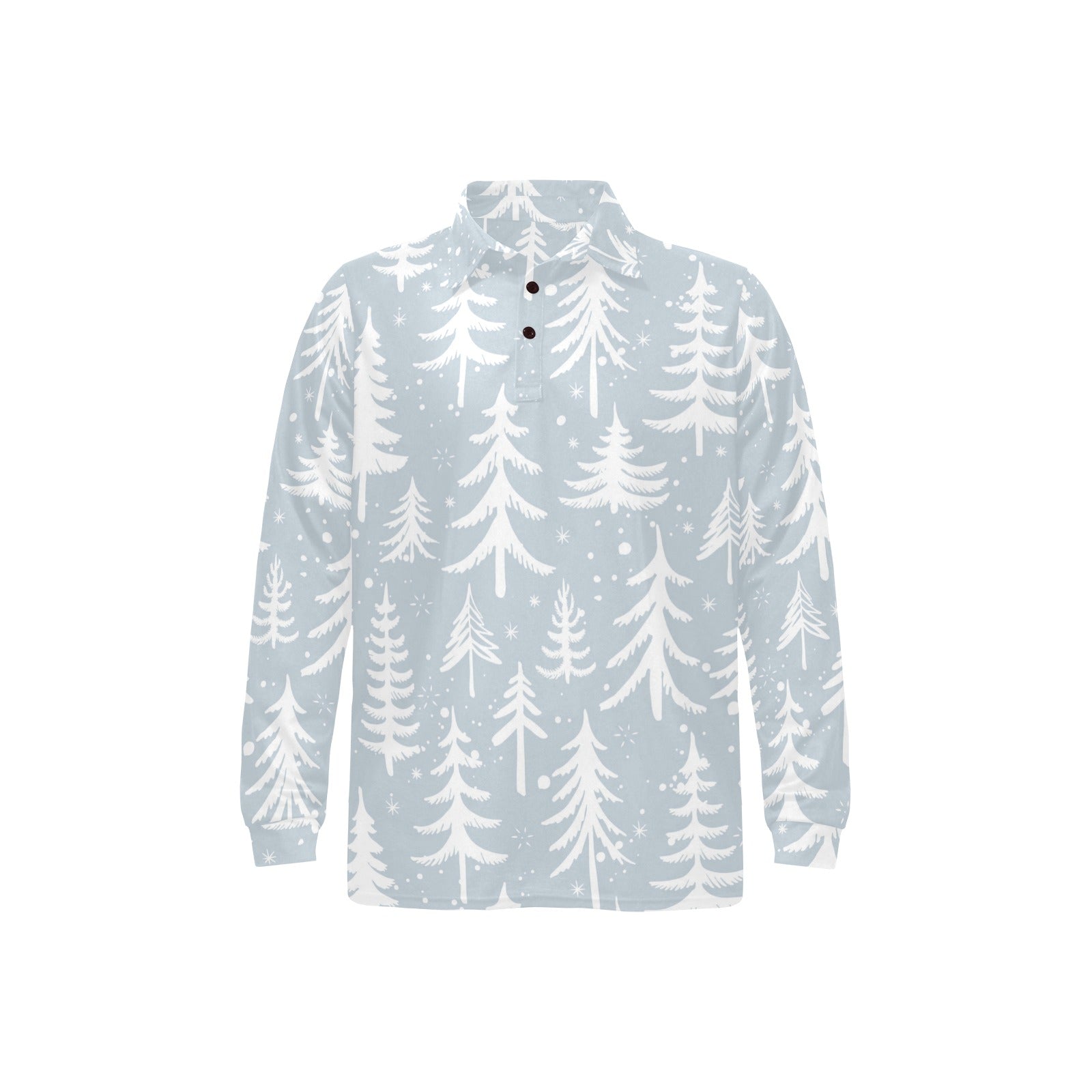 Christmas tree winter forest pattern Men's Long Sleeve Polo Shirt