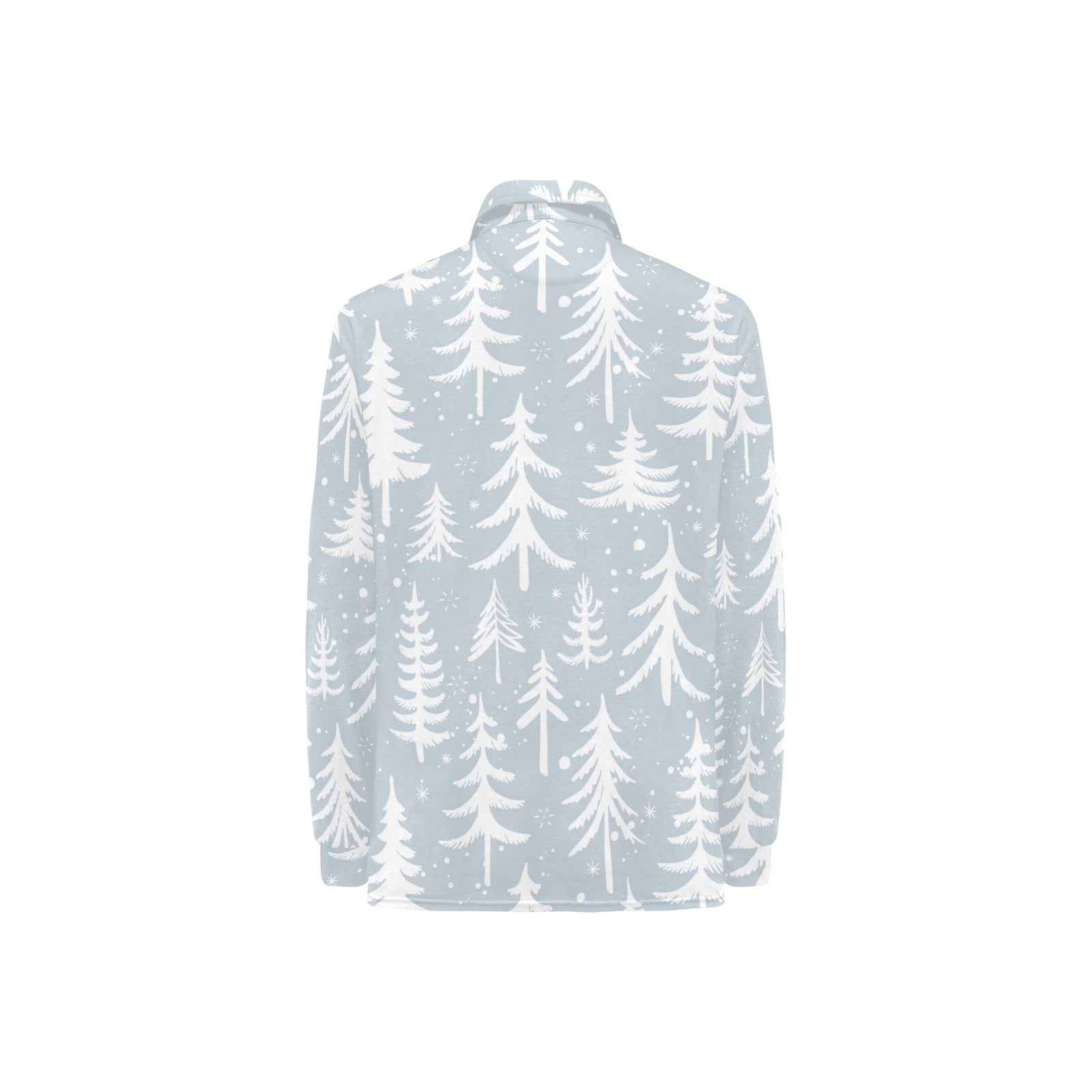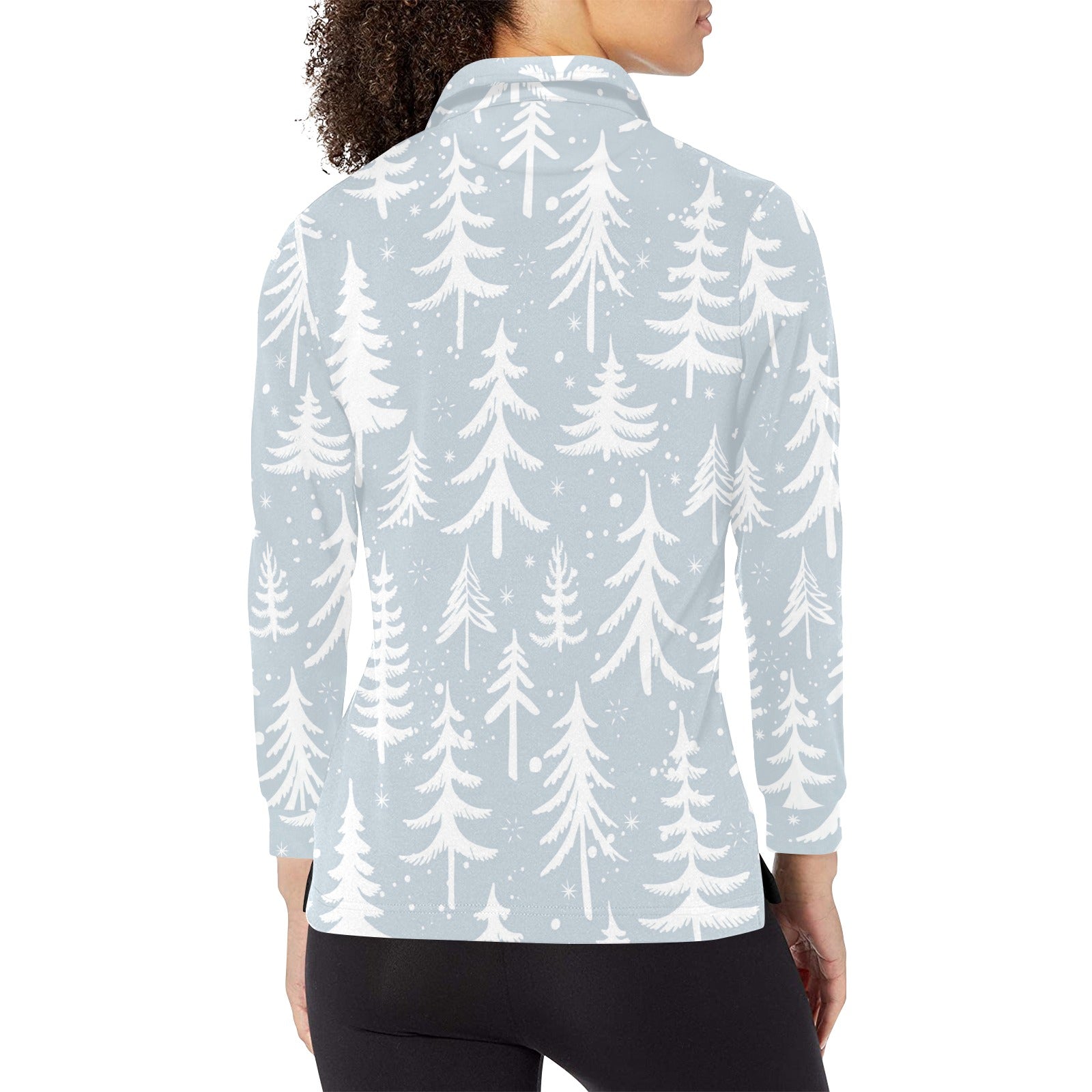 Christmas tree winter forest pattern Women's Long Sleeve Polo Shirt