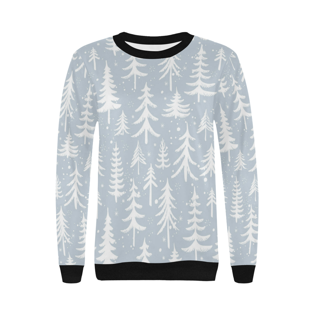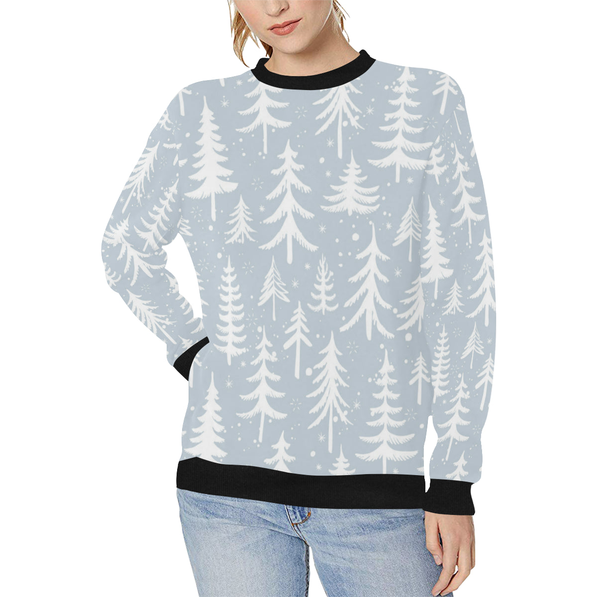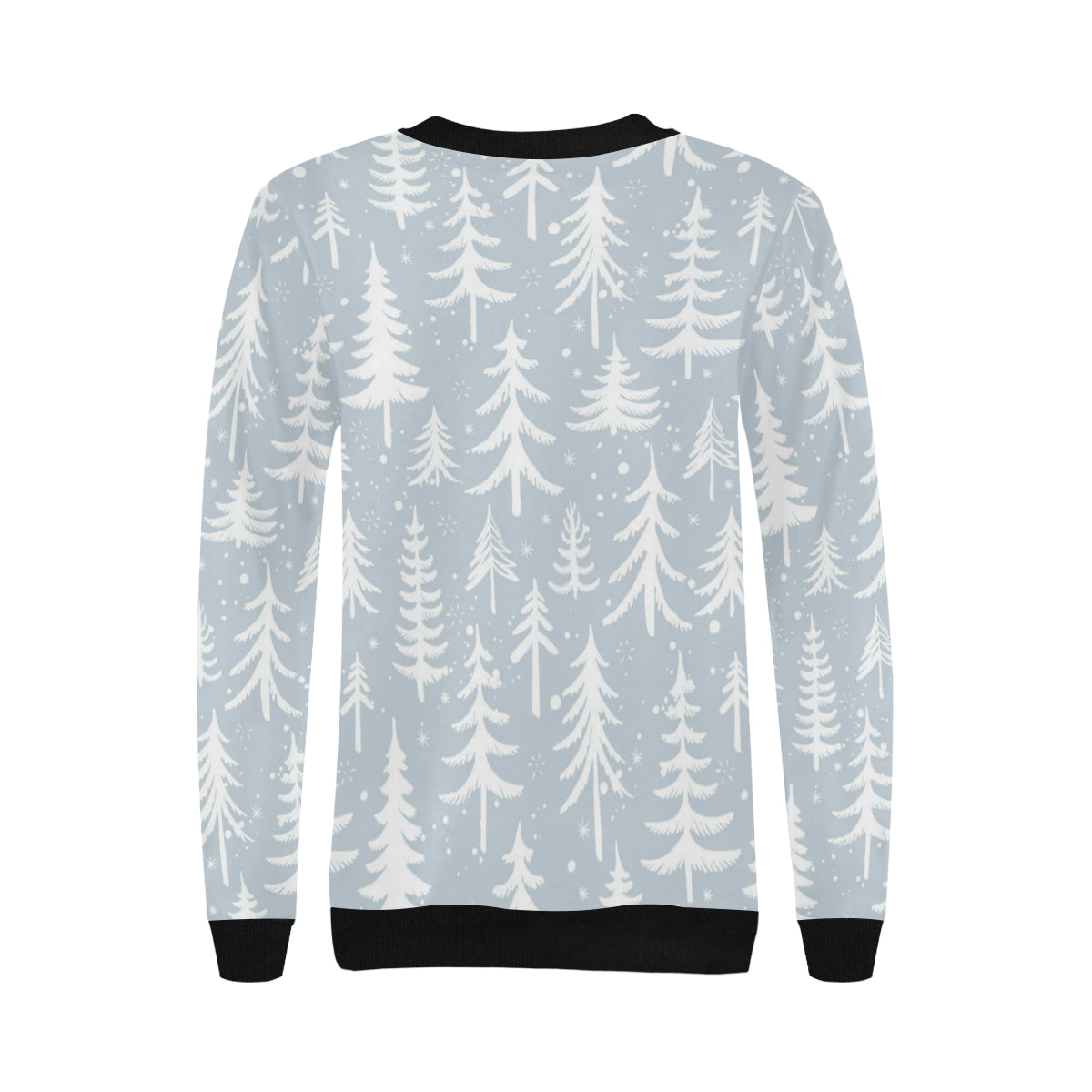 Christmas tree winter forest pattern Women's Crew Neck Sweatshirt