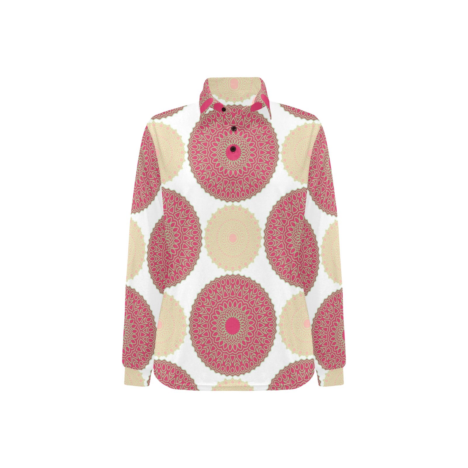Circle indian pattern Women's Long Sleeve Polo Shirt