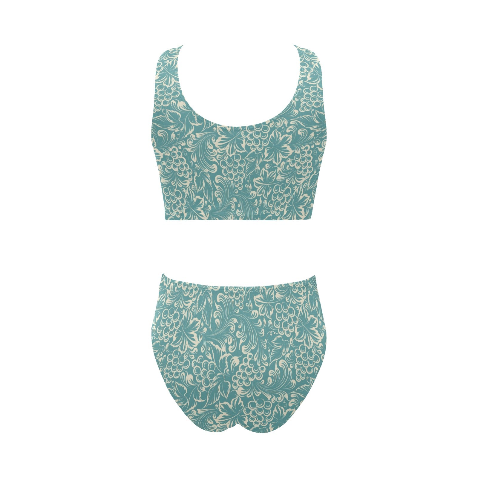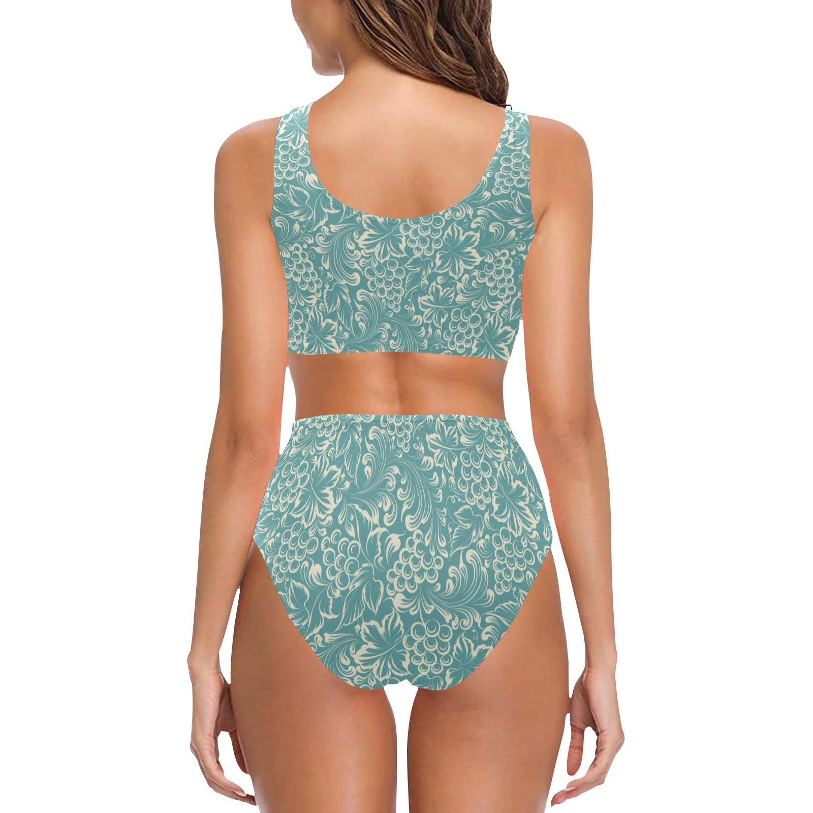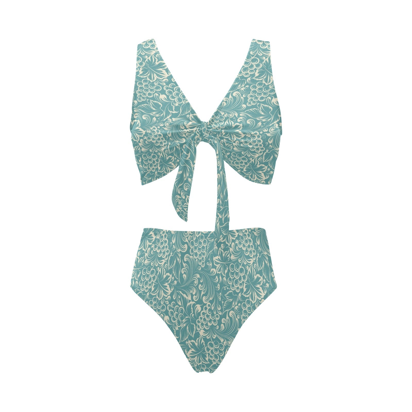 Classic Hand drawn Grape pattern Chest Bowknot High Waisted Bikini Swimsuit
