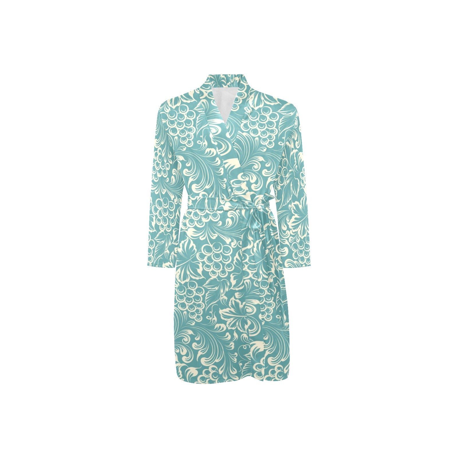 Classic Hand drawn Grape pattern Men's Long Sleeve Belted Night Robe