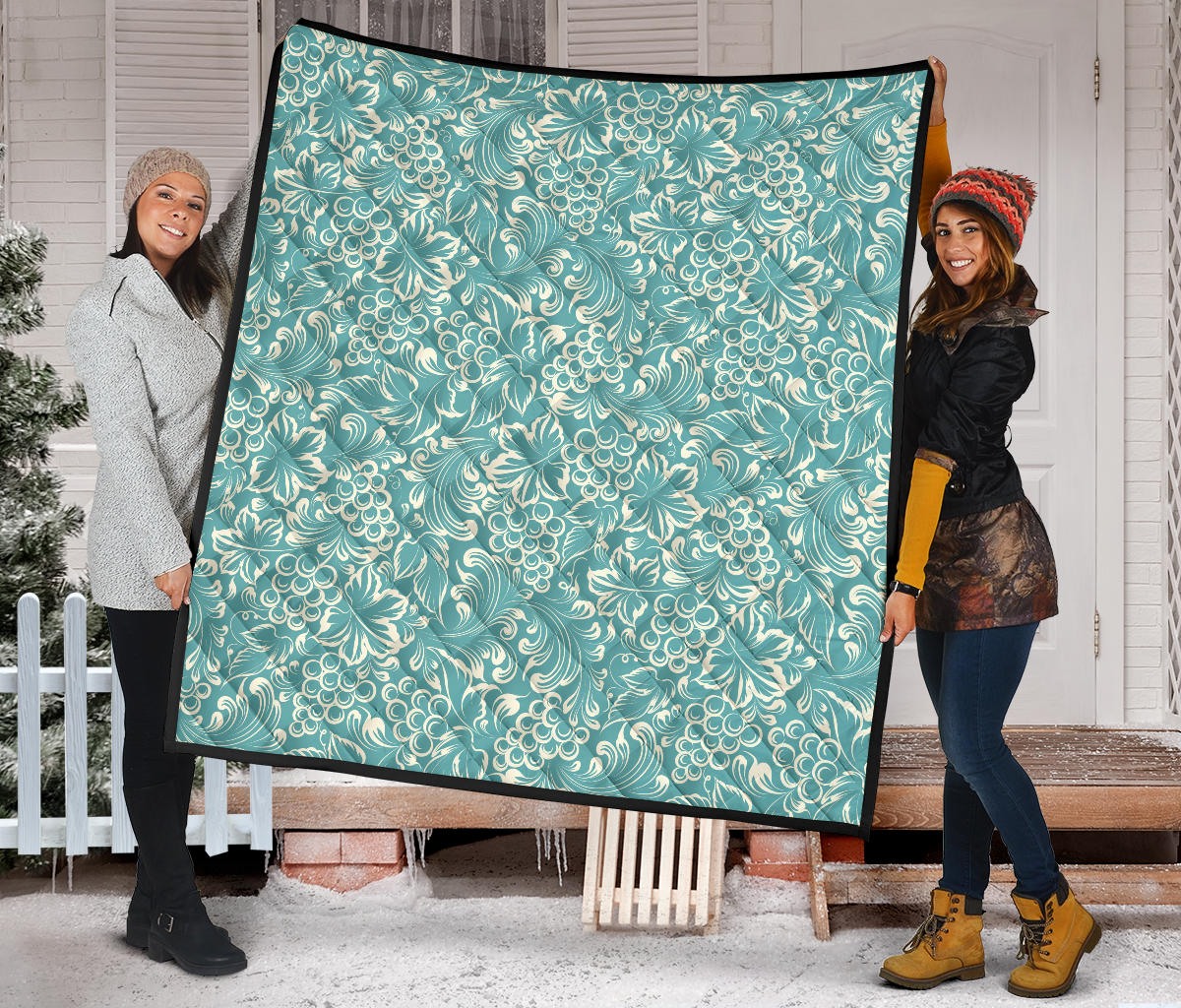 Classic Hand Drawn Grape Pattern Premium Quilt is a uniqued design and limited item. It made to order, hand printed, and sewn with love in our factory.