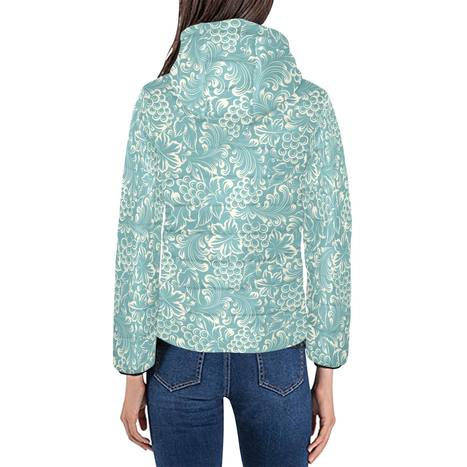 Classic Hand drawn Grape pattern Women's Padded Hooded Jacket