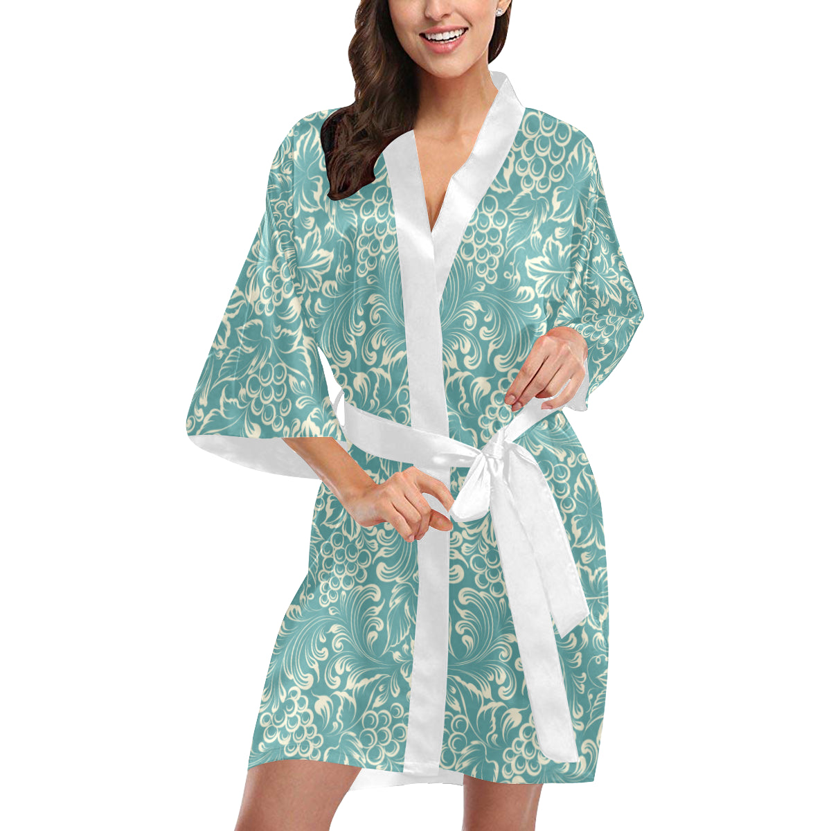 Classic Hand drawn Grape pattern Women's Short Kimono Robe is a uniqued design and limited item. It made to order, hand printed, and sewn with love in our factory.