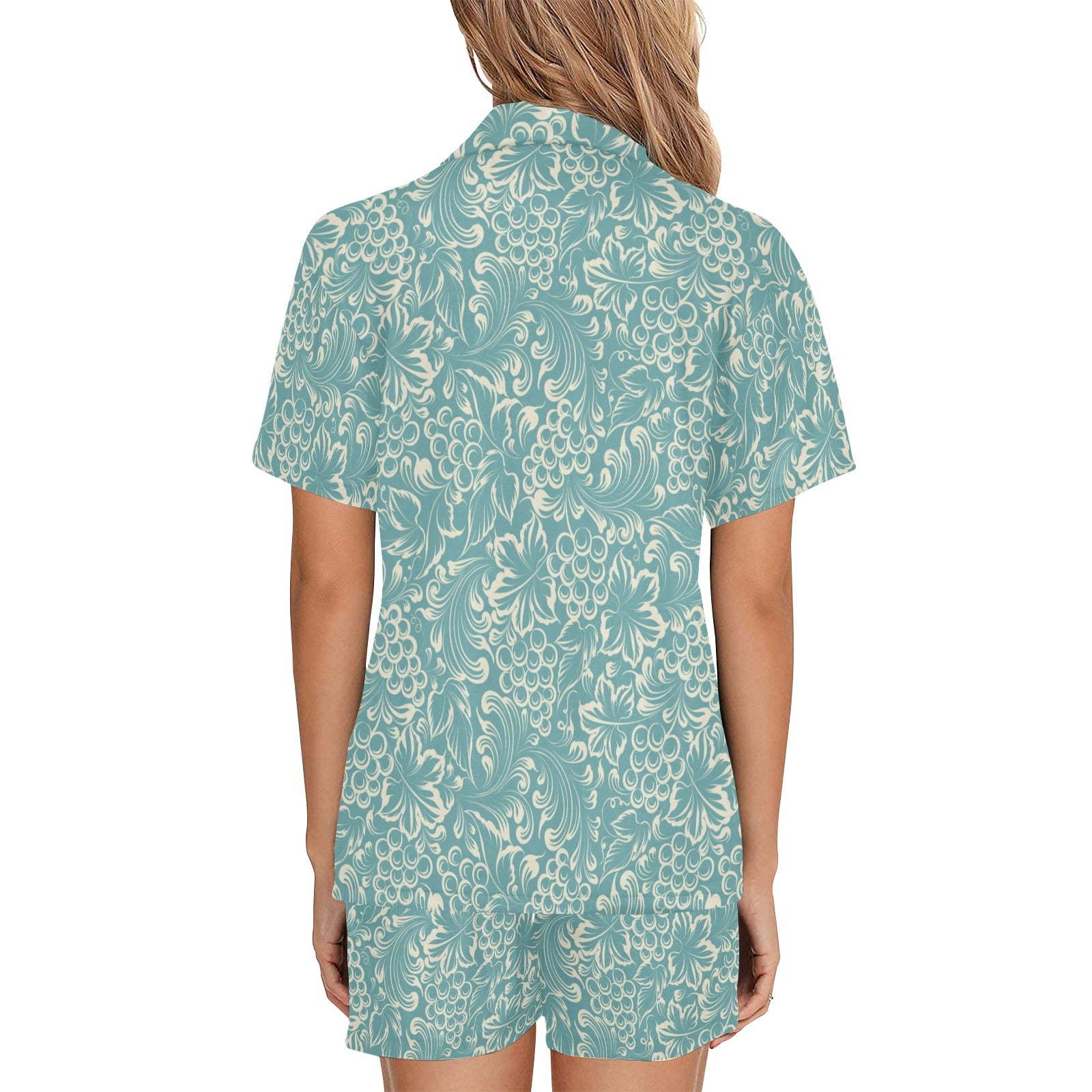 Classic Hand drawn Grape pattern Women's V-Neck Short Pajama Set