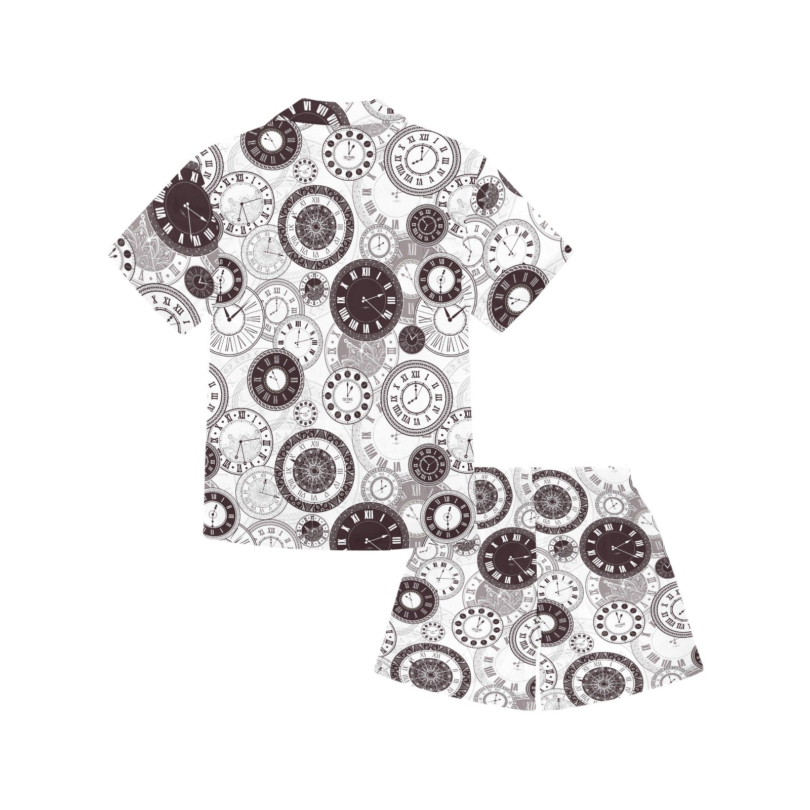 Classic vintage clock pattern Kids' Boys' Girls' V-Neck Short Pajama Set