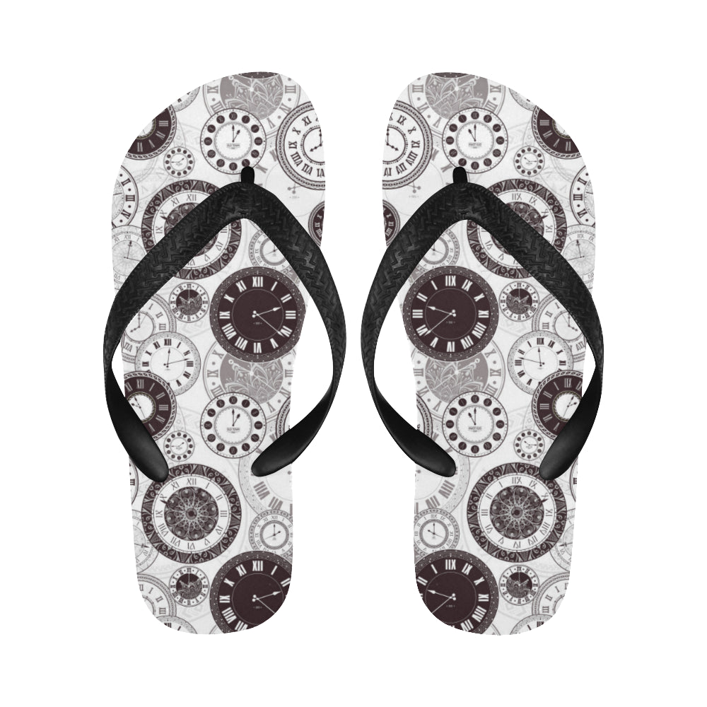 Classic vintage clock pattern Unisex Flip Flops is a uniqued design and limited item. It made to order, hand printed, and sewn with love in our factory.