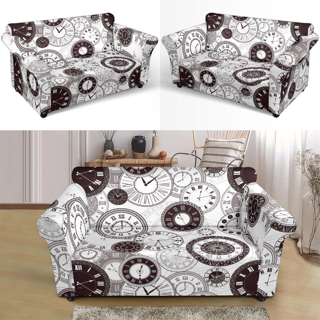 Classic Vintage Clock Pattern Loveseat Couch Slipcover