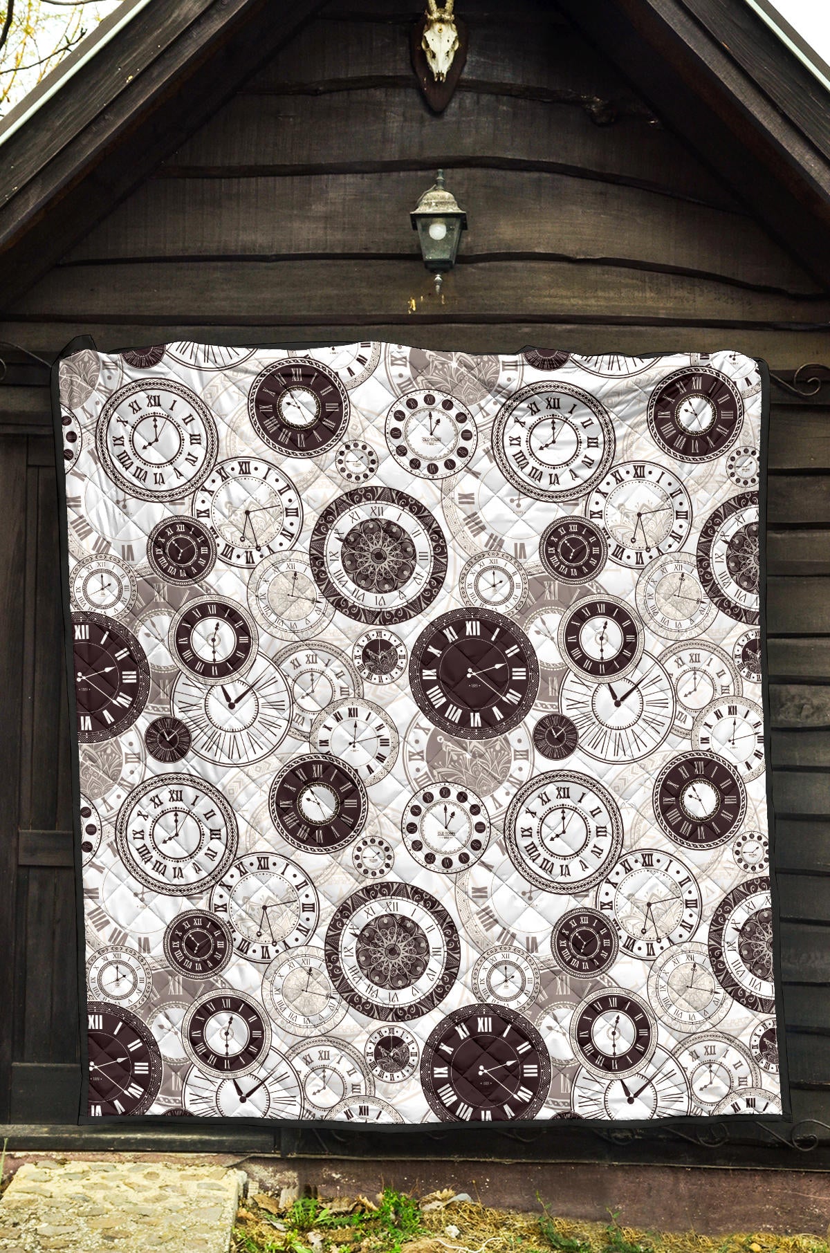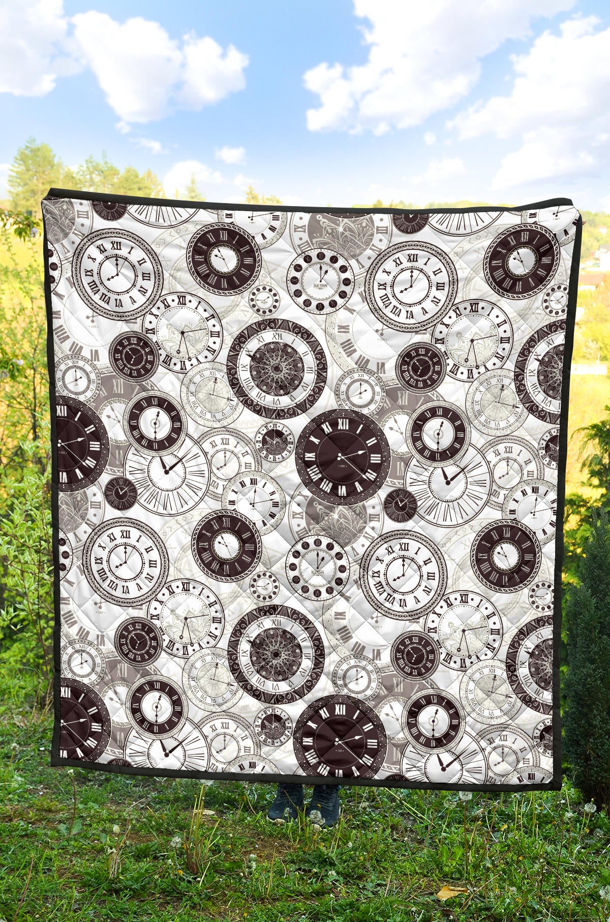 Classic Vintage Clock Pattern Premium Quilt is a uniqued design and limited item. It made to order, hand printed, and sewn with love in our factory.