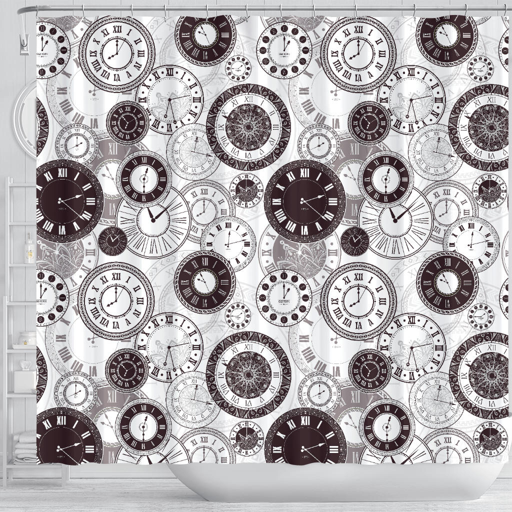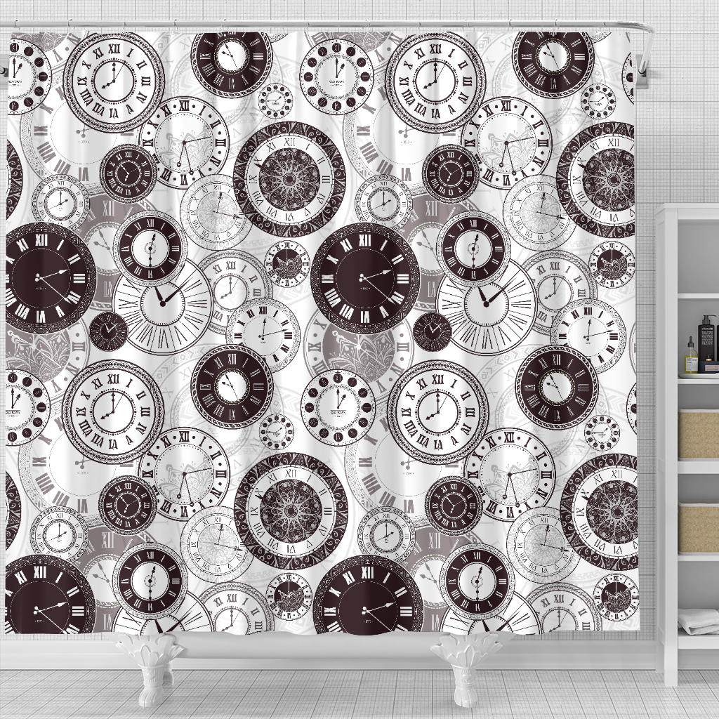 Classic Vintage Clock Pattern Shower Curtain Fulfilled In US