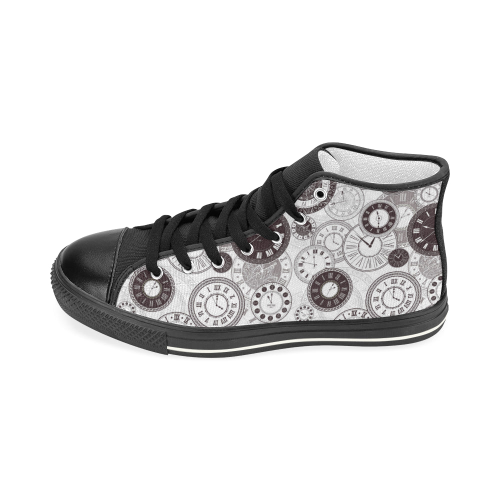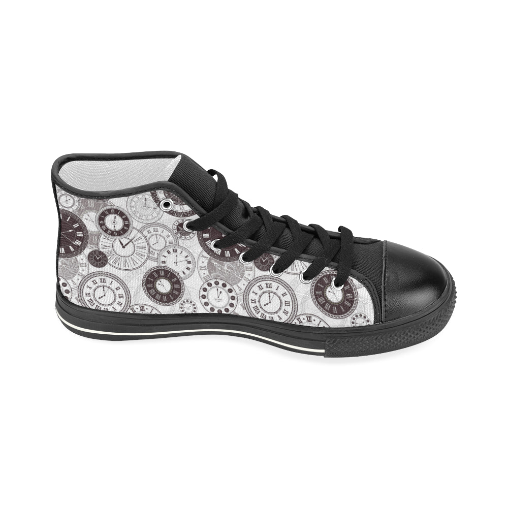 Classic vintage clock pattern Women's High Top Canvas Shoes Black