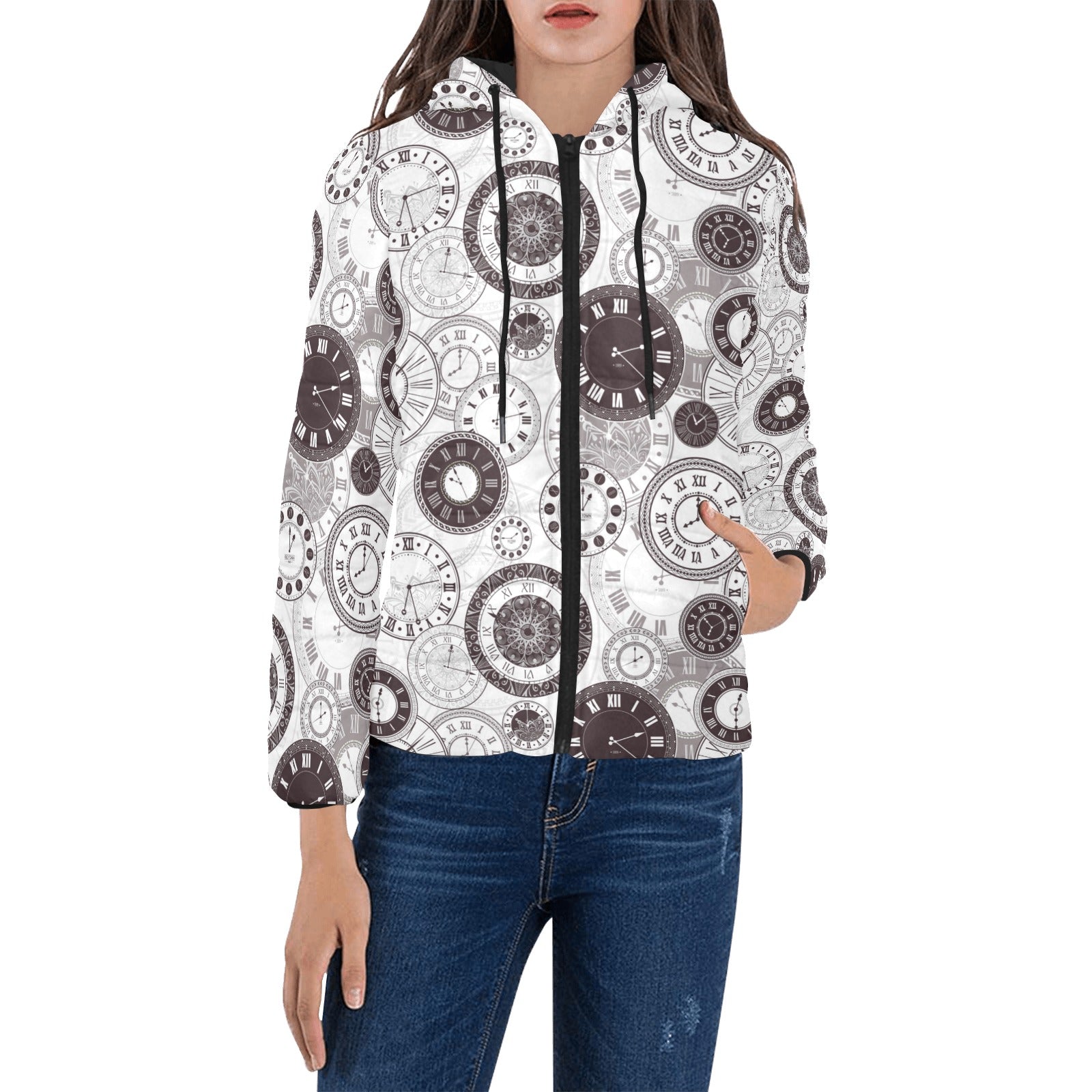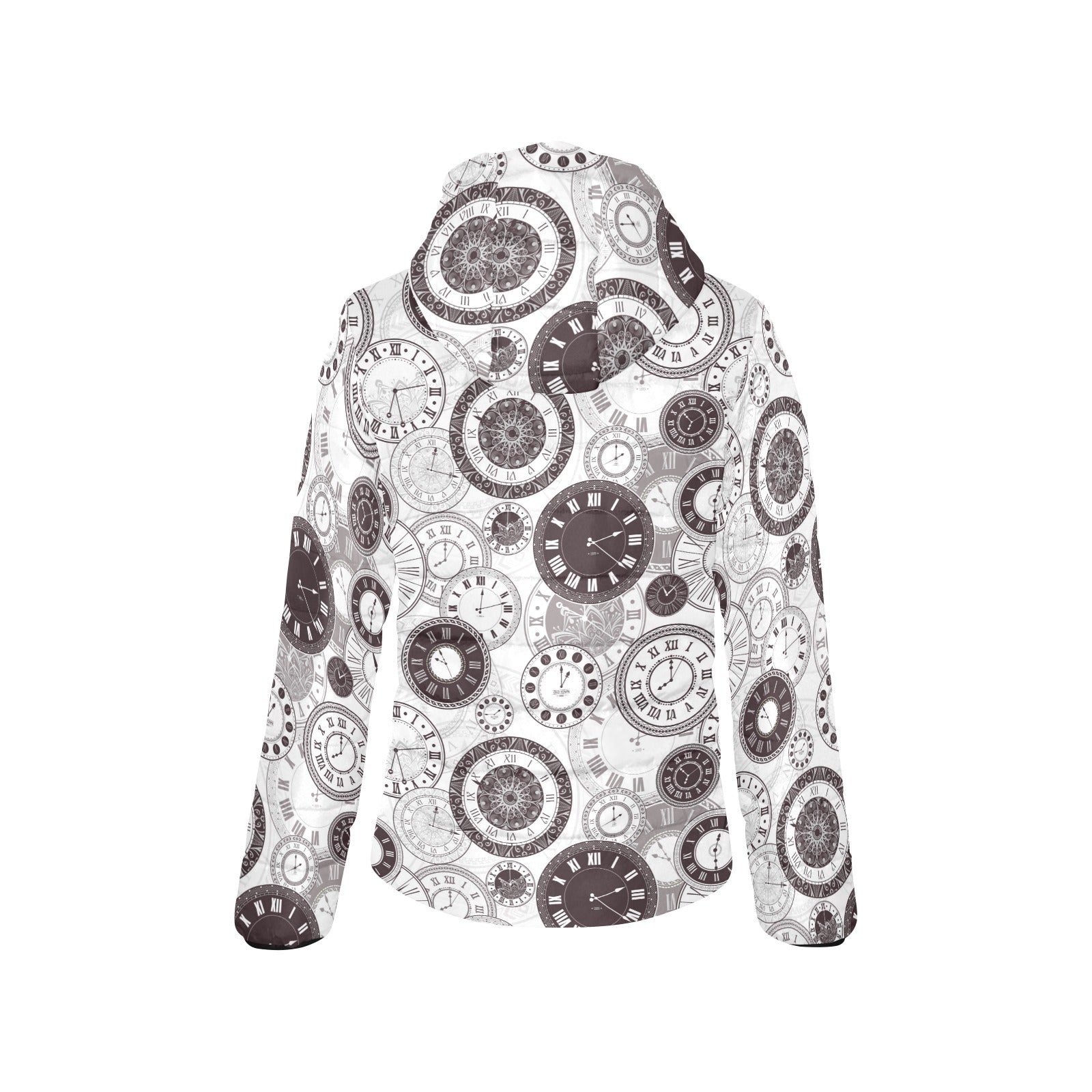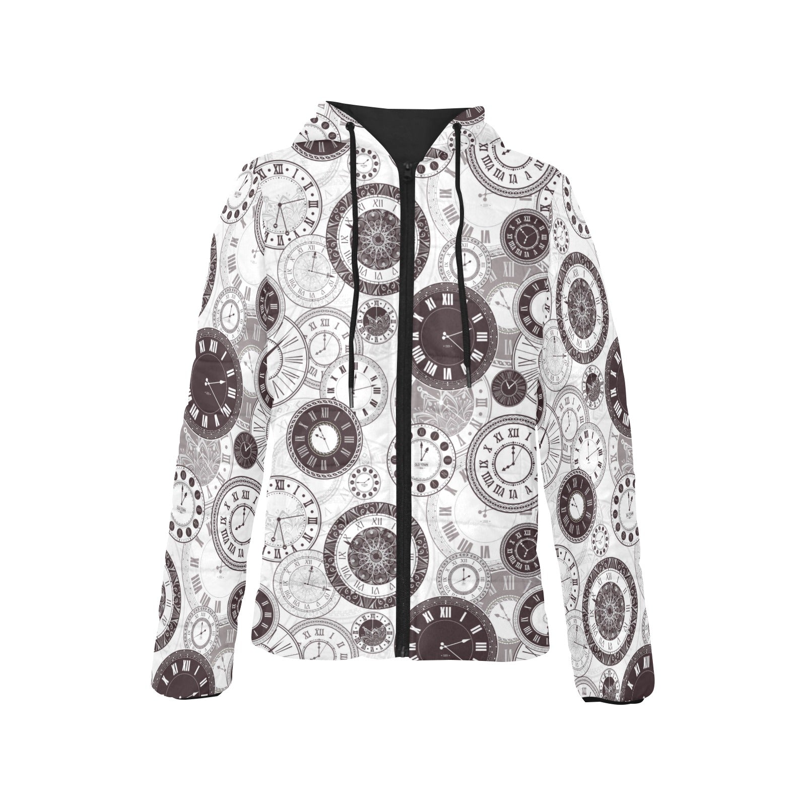 Classic vintage clock pattern Women's Padded Hooded Jacket
